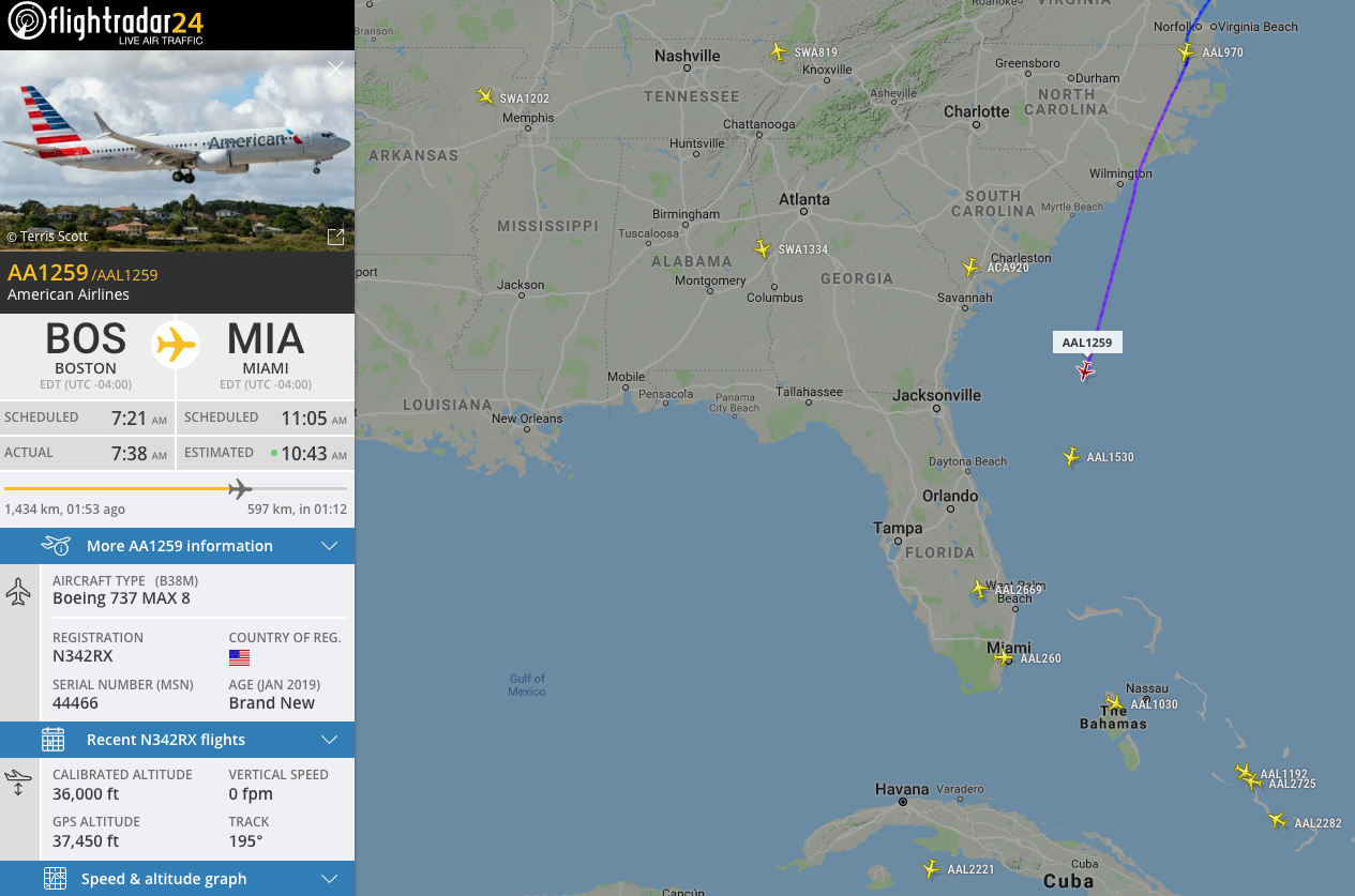 Lauren Rab Satt had her upcoming American Airlines flight canceled by the airline, she told TPG, where [the customer service] agent told her "It's because [AA is] grounding the 737 MAX." After receiving an automated call and email with proposed rebooking, she called in to ask why the flight had been canceled in the first place. AA has not made any statement about grounding the plane, and flight-tracker sites showed AA MAXes flying regularly on Wednesday morning, as well as those with other airlines.