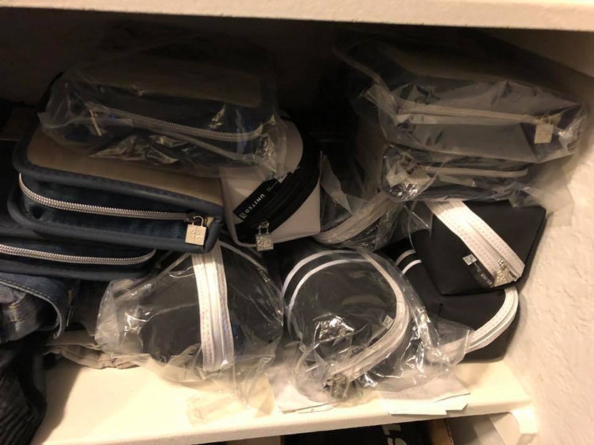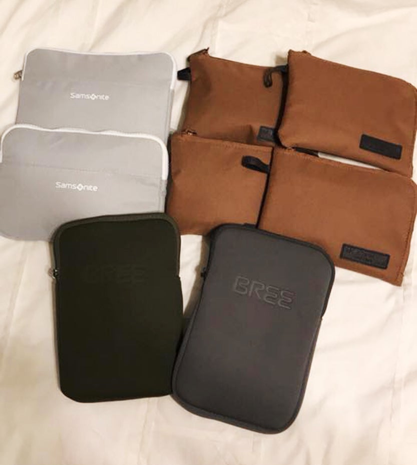 Noah Rattner uses a larger amenity kit to store his tech products.