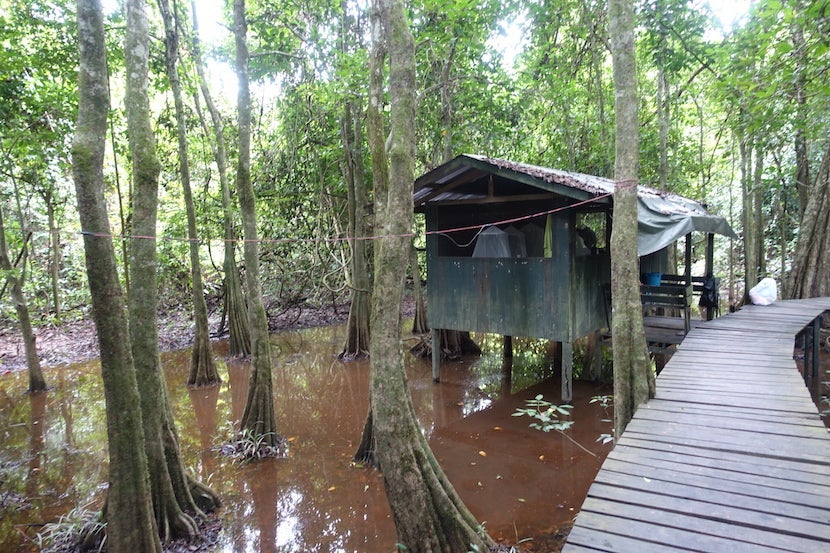 "This summer, my partner Jorge and I traveled to Borneo during a two-month backpacking adventure in Southeast Asia. We spent three nights in the Borneo jungle, sleeping in an open-air cabin on stilts over a swamp shared with four other people (and one giant snake, which we found one night), no AC in the 100-degree heat and no shower. (A bucket of river water doesn't count!) We couldn't bathe in the river itself because of… crocodiles. While there, we trekked and went out by boat to see orangutans along with monkeys, snakes and birds."