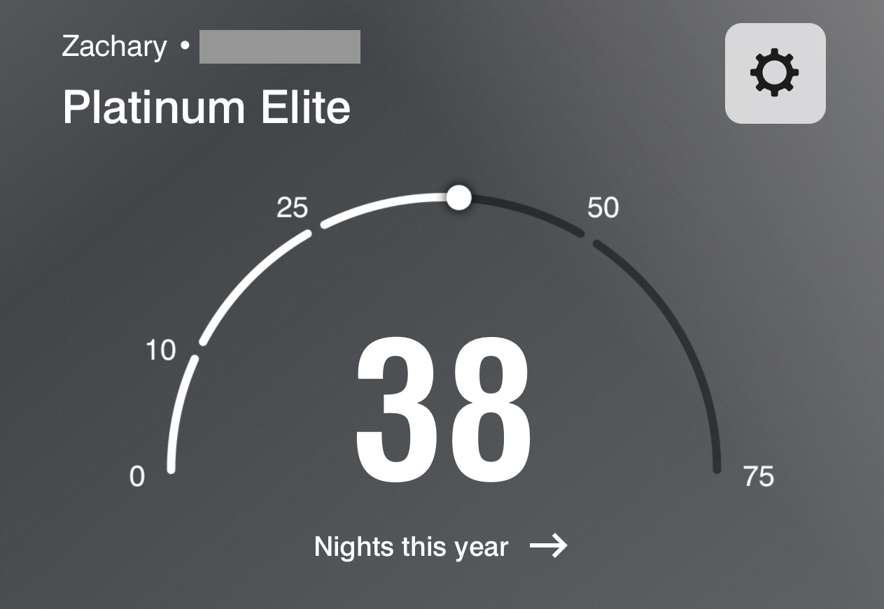 To date, I've earned 38 elite nights — eight from sleeping in hotels and 30 promotional nights from holding both a Marriott personal and business credit card. I envision spending 12 more nights across Bonvoy properties this year, which will help me cross the 50-night threshold for Platinum status.