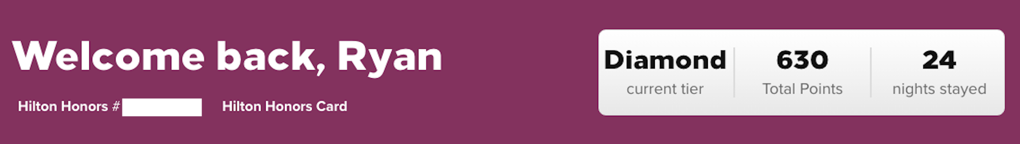 Current status: Hilton Honors Diamond.