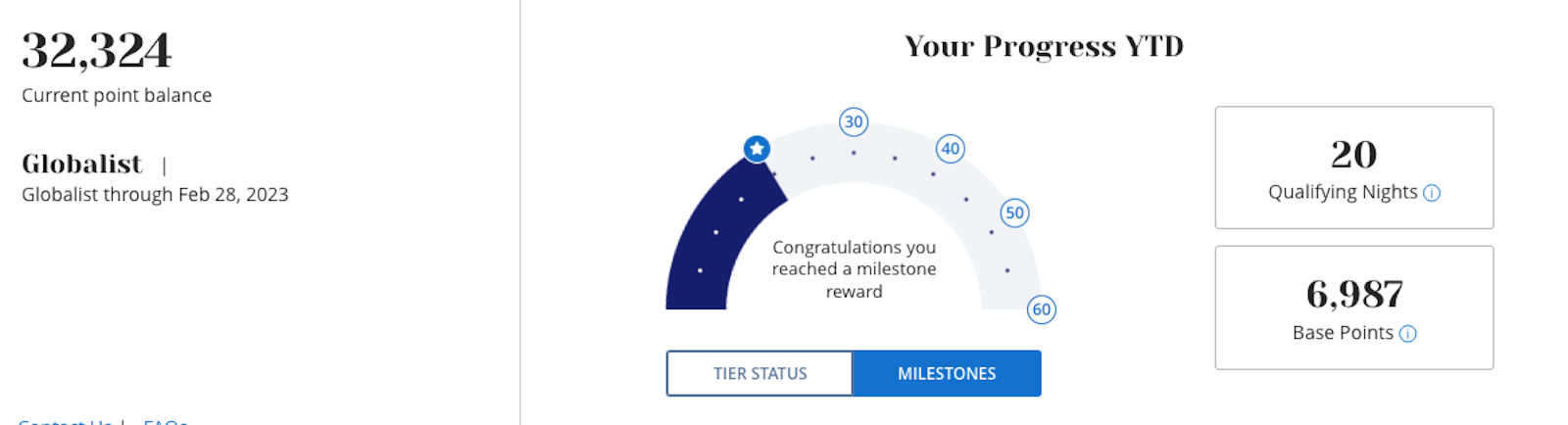 Like Nick Ewen, Director of Content, said, I got a taste for the good life with Hyatt Globalist through the promotions available last year, and I'm working on keeping my status. I have 20 stay credits so far this year, and I have 2 nights from a recent stay that haven't posted yet. On top of that, I will still earn another 6 nights when spending $15,000 on the card this year (for the free night award). With stays I have lined up over the rest of the year, I should squeak in at exactly 60 nights and will probably get there on one of the last days of the year.