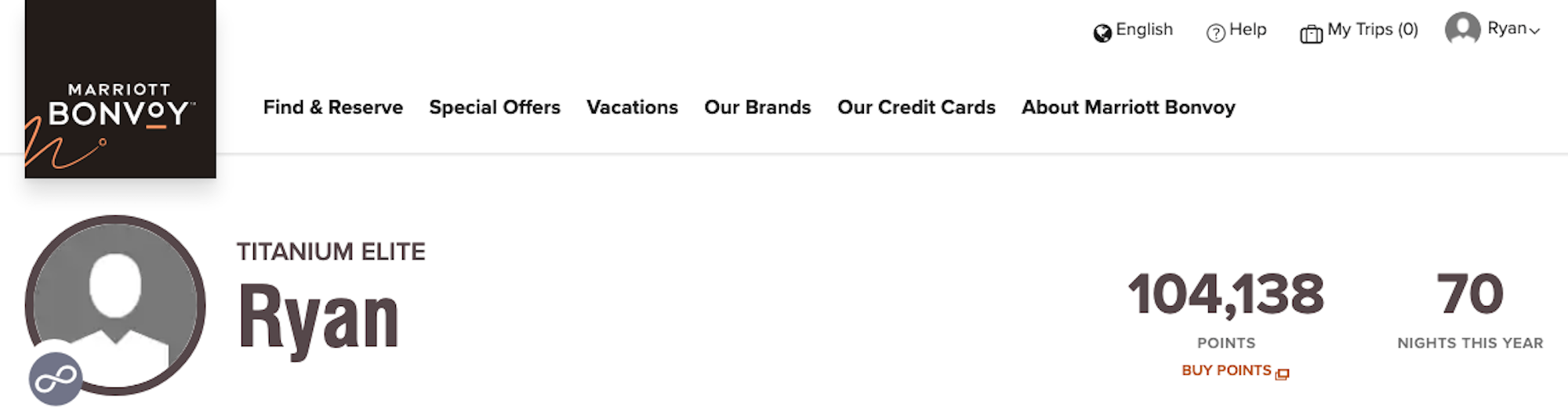 Goal: Marriott Bonvoy Titanium Elite