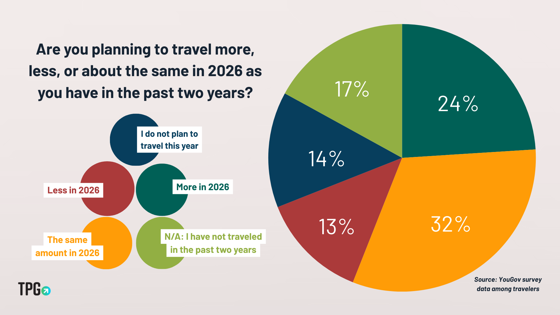 In fact, about a quarter of Americans (24%) say they plan to travel more in 2026 than they did in the past two years, while 32% plan to travel about the same.