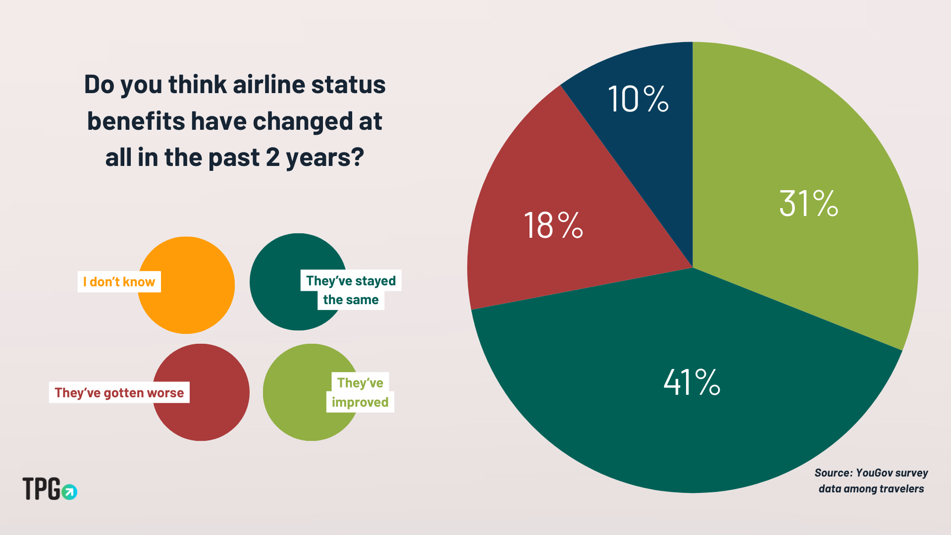 We also asked, "Thinking about airline elite status benefits, how, if at all, do you think they have changed in the past two years?"