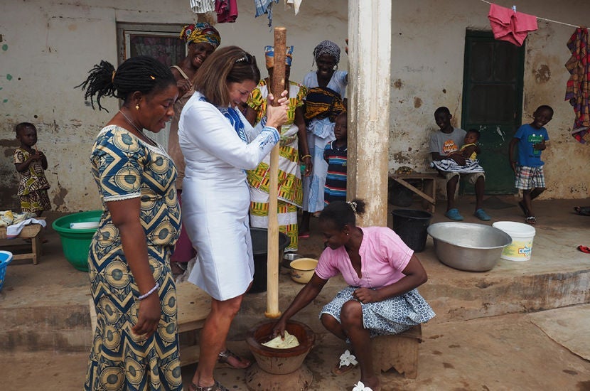 During lunch, we watched the village women making foo foo (pounding a plantain mixture). They politely withheld their laughter as our group took turns trying, unsuccessfully, to match their technique.