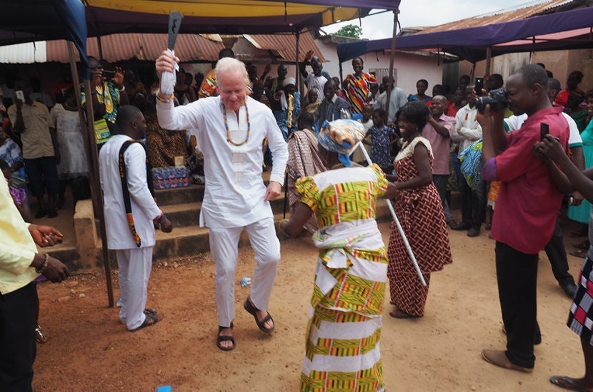 The village women presented him with a beaded bracelet that's reserved only for traditional chiefs, and he was given his traditional name — Nene Kwesi Mateu Tsu the First.