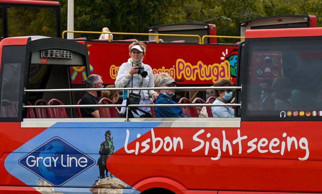 Featured photo shows tourists visiting the Torre de Belem (Belem Tower) in Lisbon, Portugal on Oct.19, 2021. (Photo by Nikolas Kokovlis/NurPhoto via Getty Images)