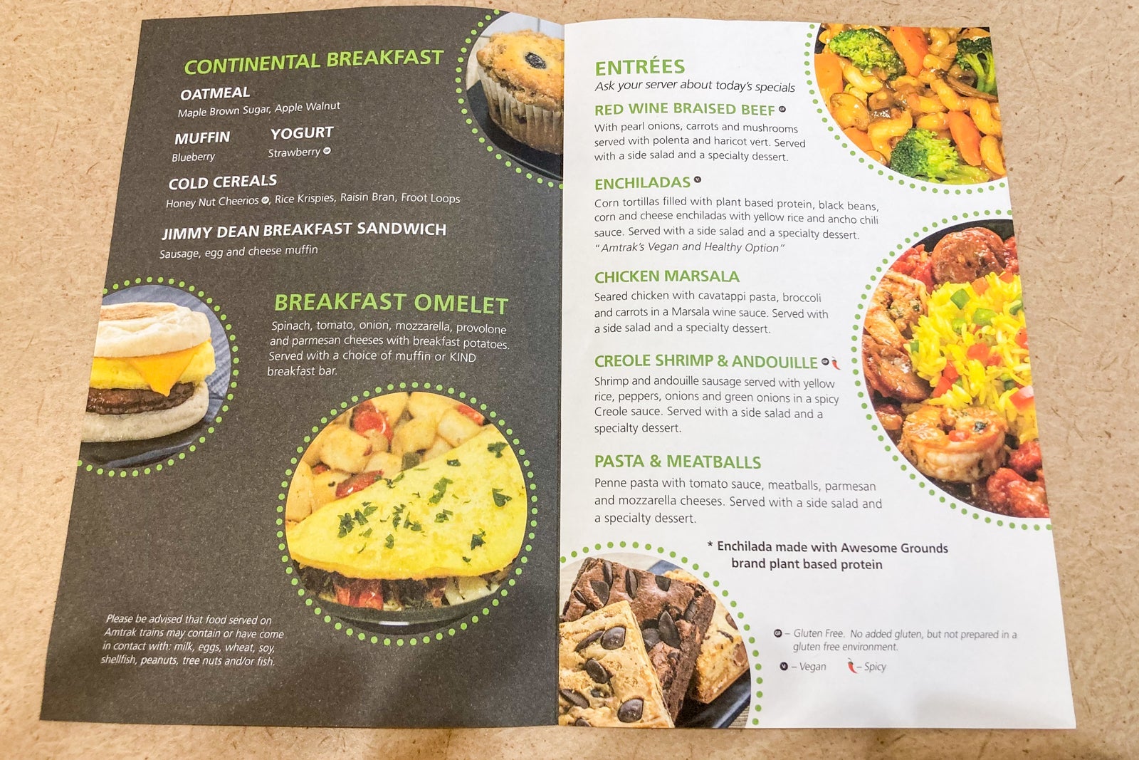 There were printed menus in the car, and there were five selections for the main course — including a vegan option.