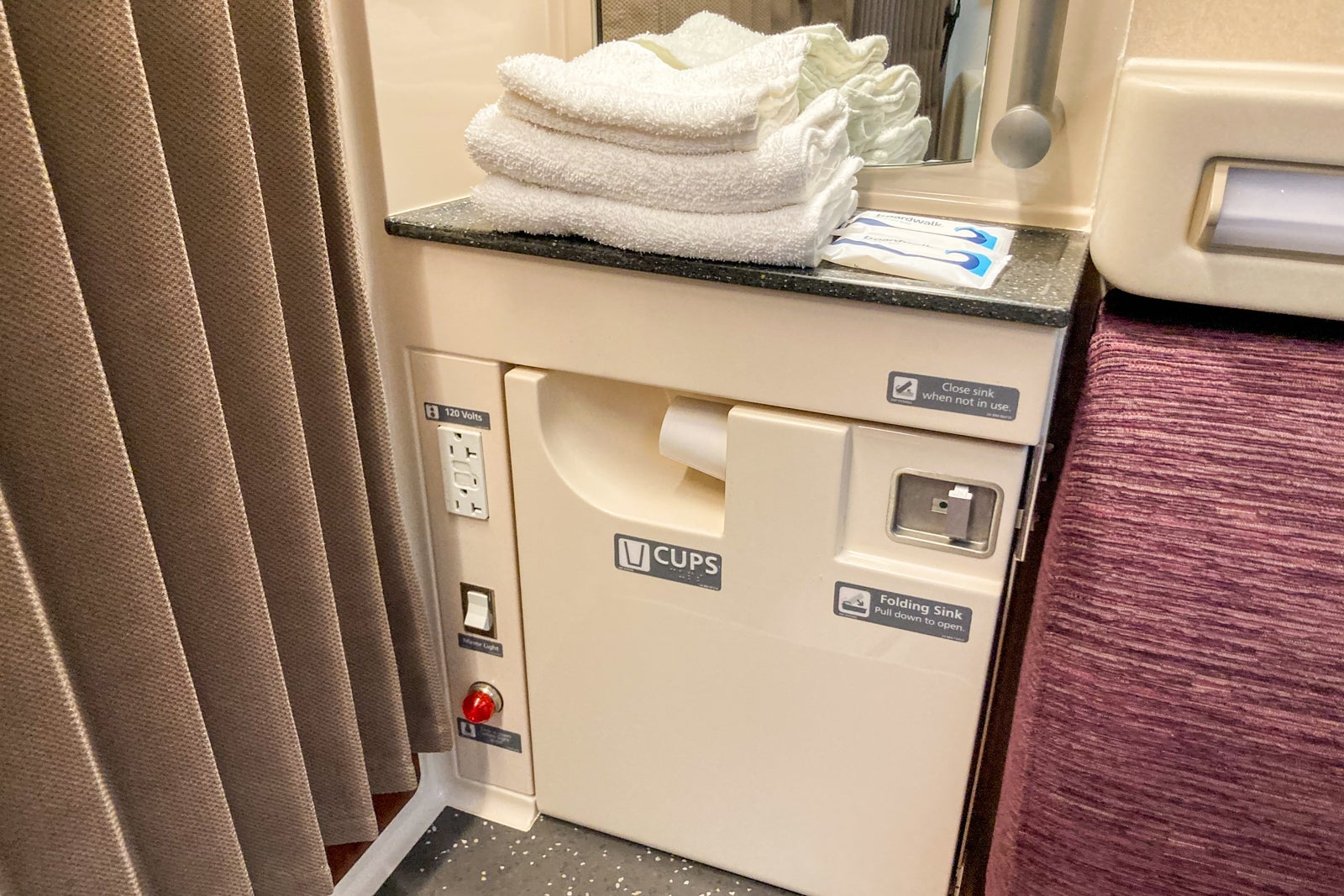 We were provided a pair of hand towels and washcloths, and we even had our own pull-out sink.