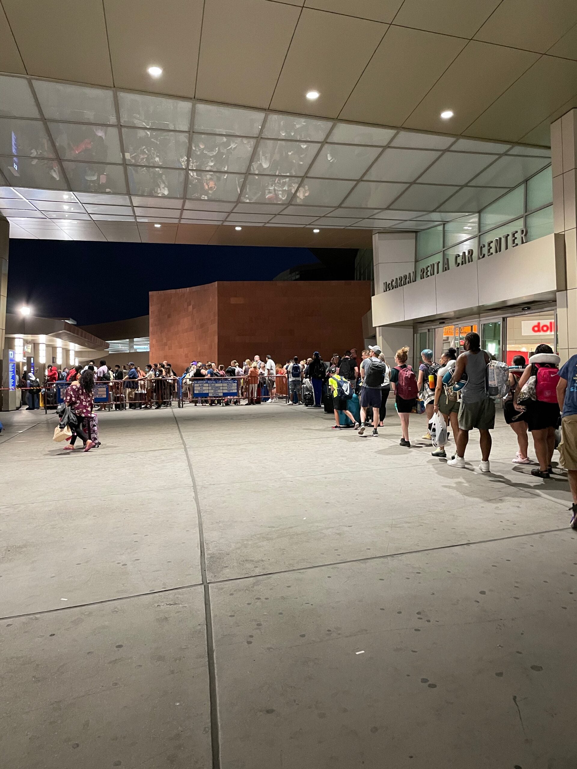 At popular destinations like Orlando and Las Vegas, the lines at discount car brands like Thrifty and Dollar are crushing, as well as endless lines for a shuttle bus. There are frequent reports online of folks who had what they believed was a guaranteed car reservation, but they had to wait hours for cars after arrival.