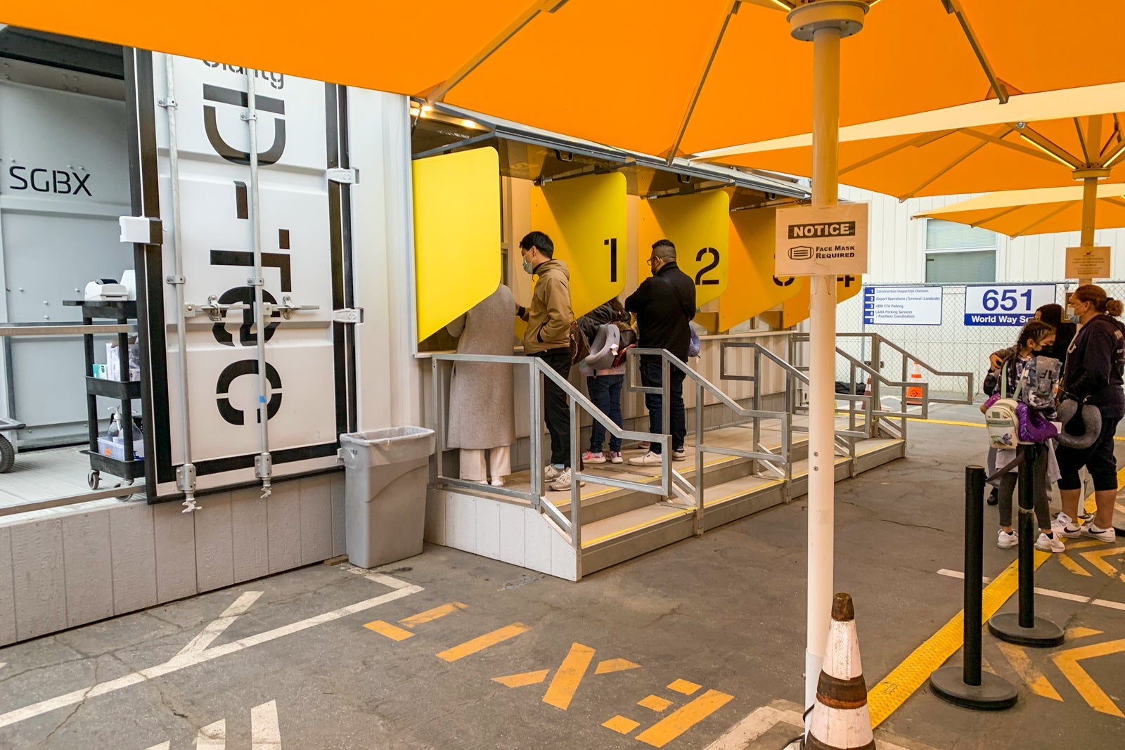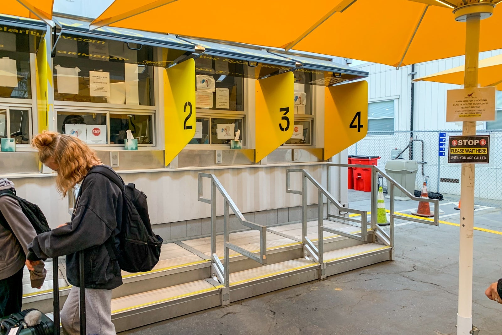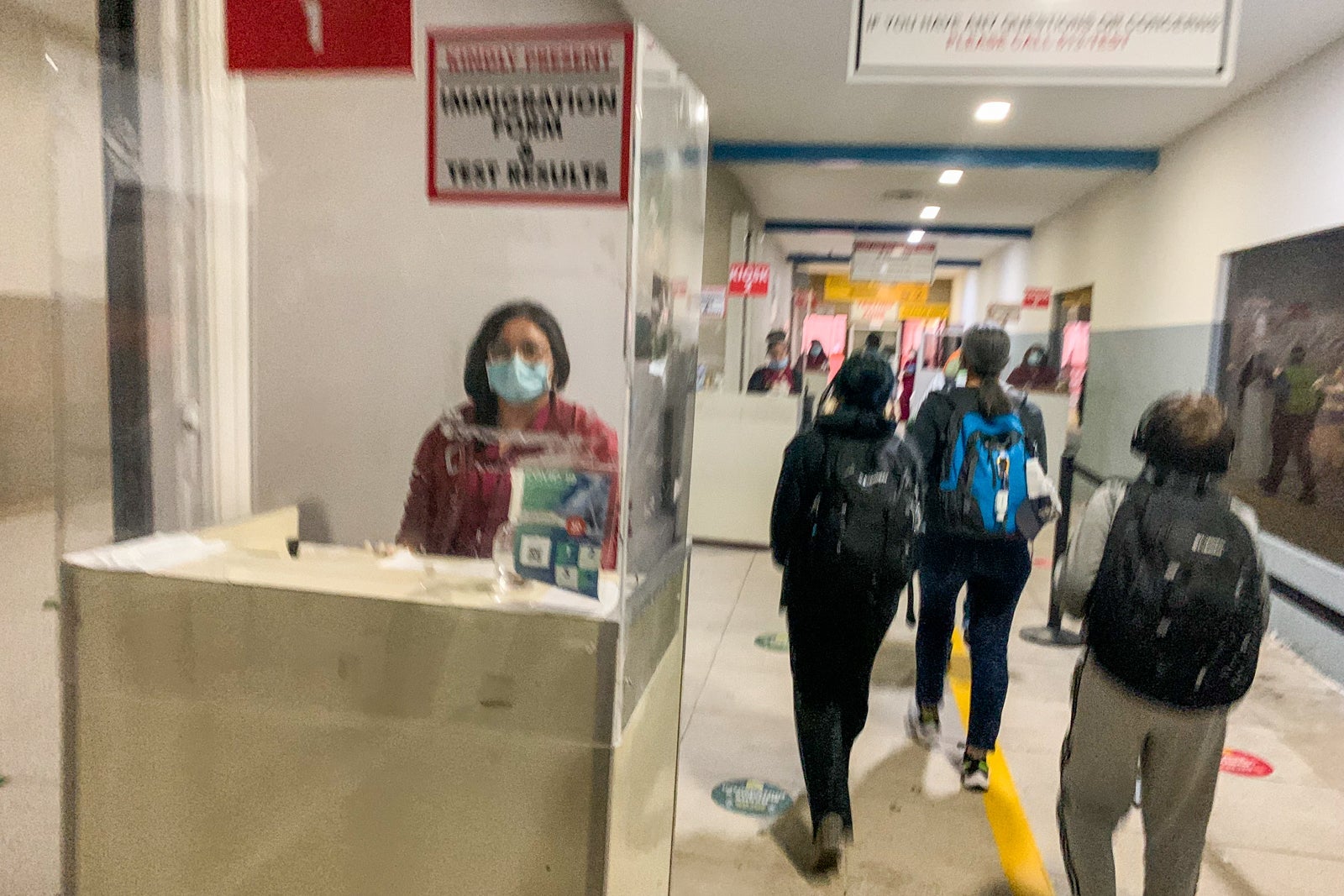 I was directed to a stand with a plexiglass shield where I showed my negative test results from Clarity Labs (stored on my phone as a photo) as well as the immigration form. The form was stamped by a friendly woman working the check-in station, and then I was sent around the corner to the next station where my form was stamped again.