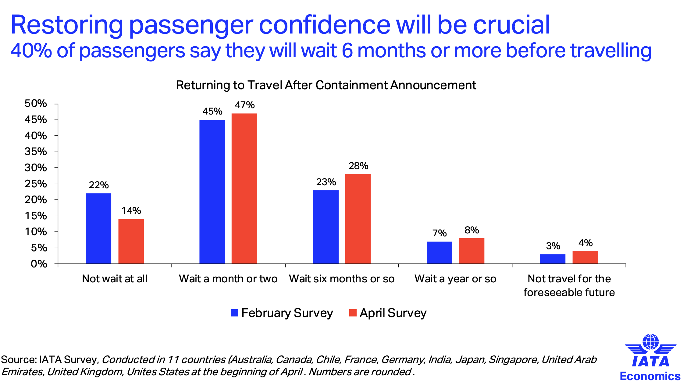 "Confidence is everything," said IATA chief economist Brian Pearce on the survey on April 22. "We really do need to see measures that restore passenger confidence."