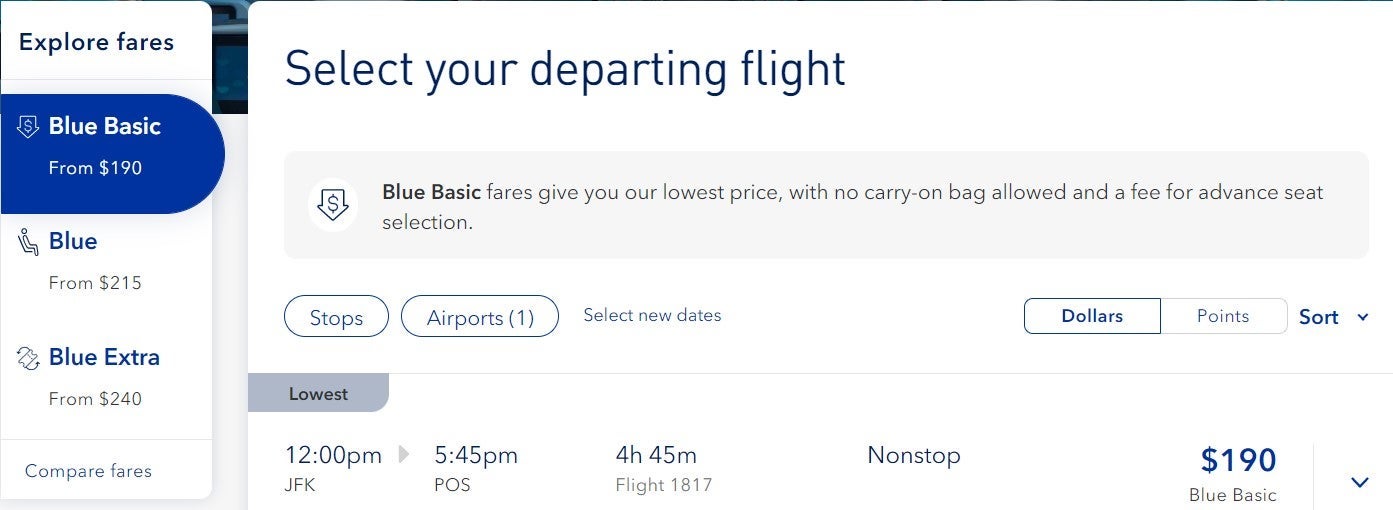 If travelers want to escape winter on the east coast, JetBlue offers nonstop flights to POS from JFK. In January after the height of the holiday travel season, there are round-trip tickets at $190 for Blue Basic seats, $215 or 14,300 points for Blue seats and $240 or 16,200 points for Blue Extra seats round-trip.