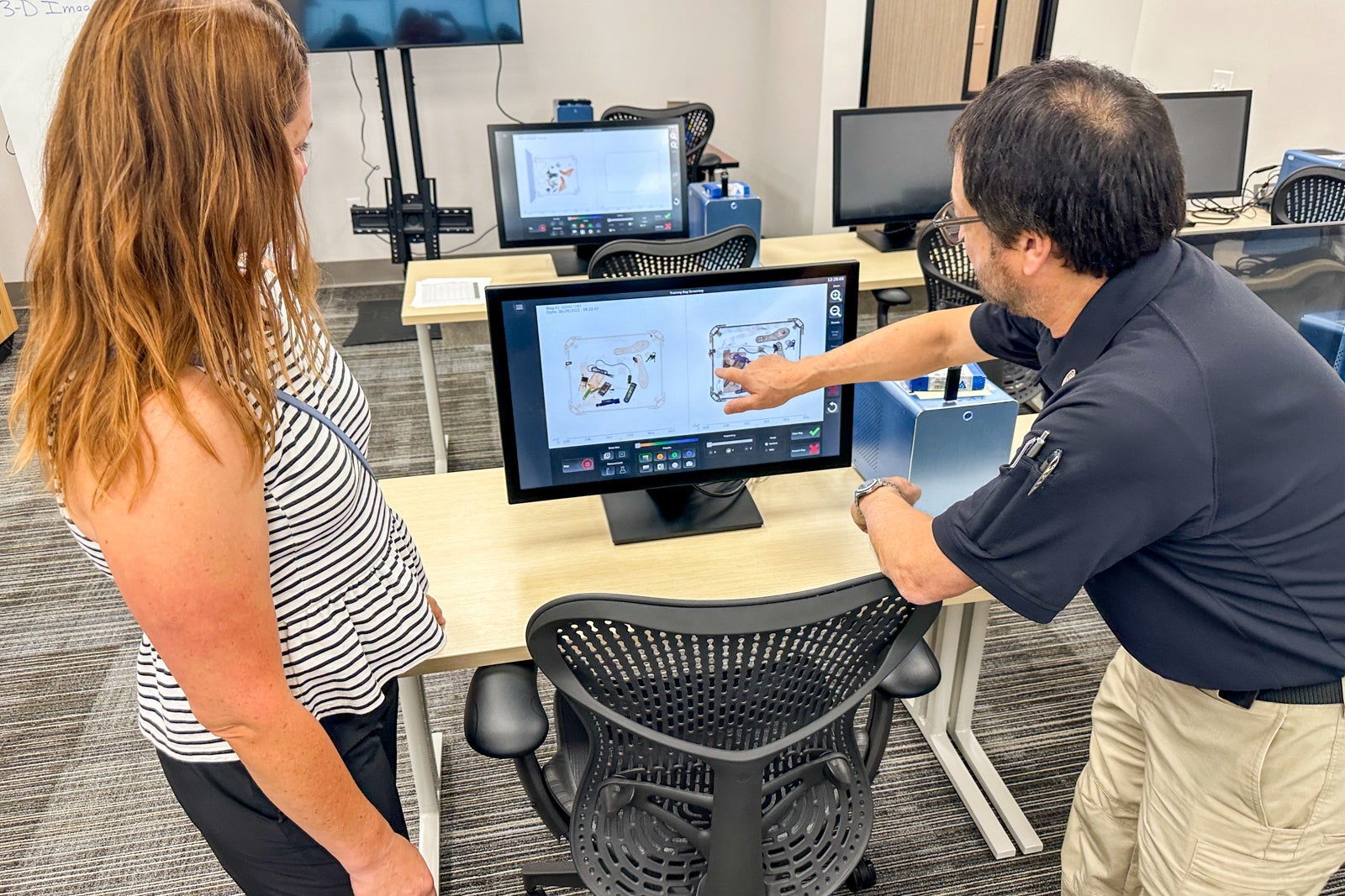 Though students perform role-playing scenarios in the classroom, doing so at the training checkpoint builds upon what they practiced and better prepares them for what they will encounter after graduation. They can also learn how to operate the equipment, from turning an X-ray machine on and off or calibrating equipment at the start of their shift.