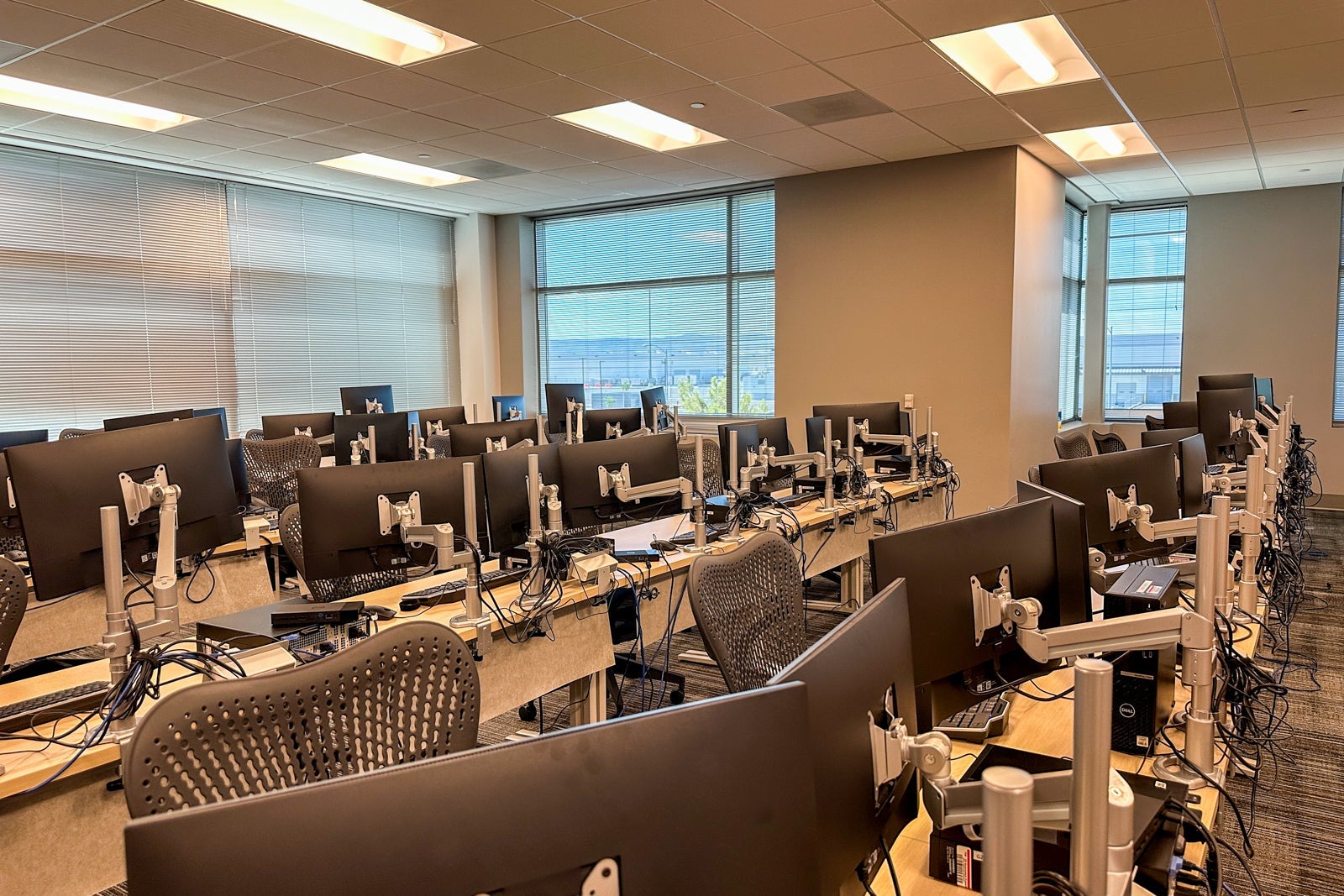 One classroom is outfitted specifically to train students on Computed Tomography scanners, which use 3D images rather than the 2D technology typically seen at airports. CT technology is currently in use at more than 200 airports. It is being rolled out to additional airports all the time, making it an important training topic for students to cover before returning to their home airports.