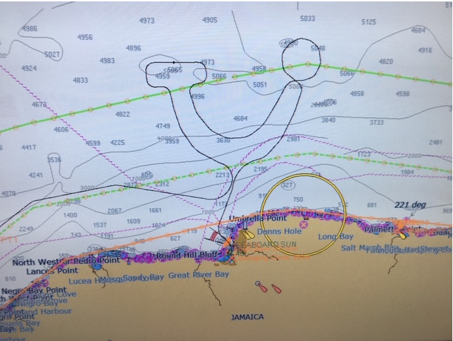The 2,074-passenger Marella Discovery 2 on Tuesday "painted" a 16-mile-wide picture of the Marella Cruises "smile" logo in the sea near Jamaica as it prepared to suspend operations.