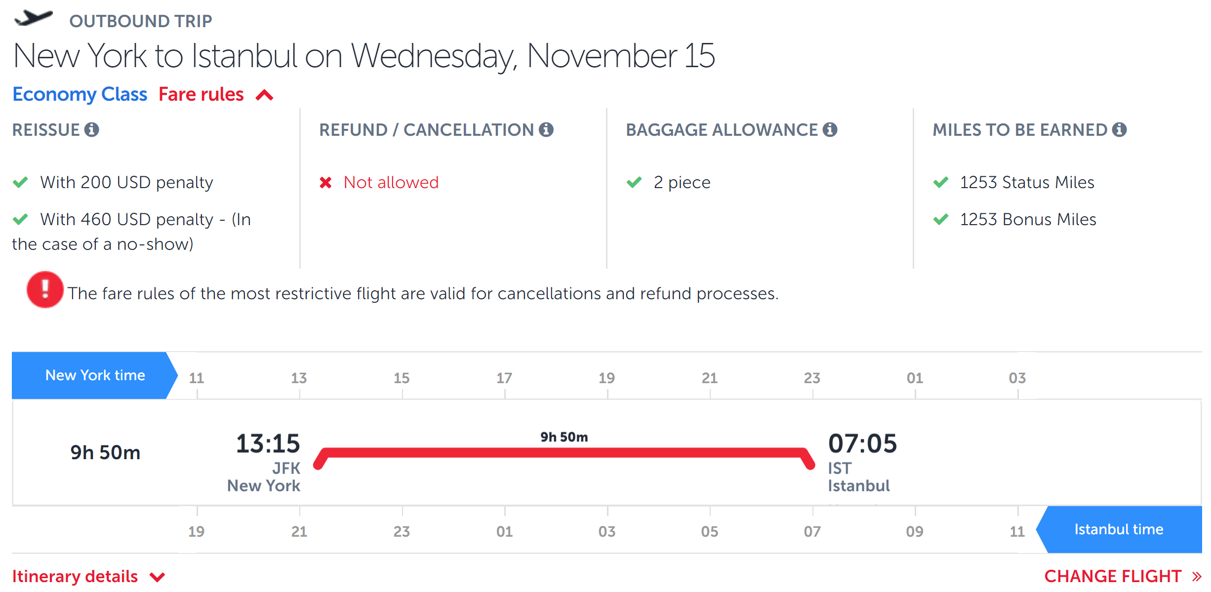 The restriction remains in place that you must have purchase your Turkish Airlines ticket by October 9. This is bad news for anyone who hasn't been following the news carefully. Turkish Airlines still is selling tickets between the US and Turkey — and there are no notices or warnings in the Turkish Airlines website sales process.
