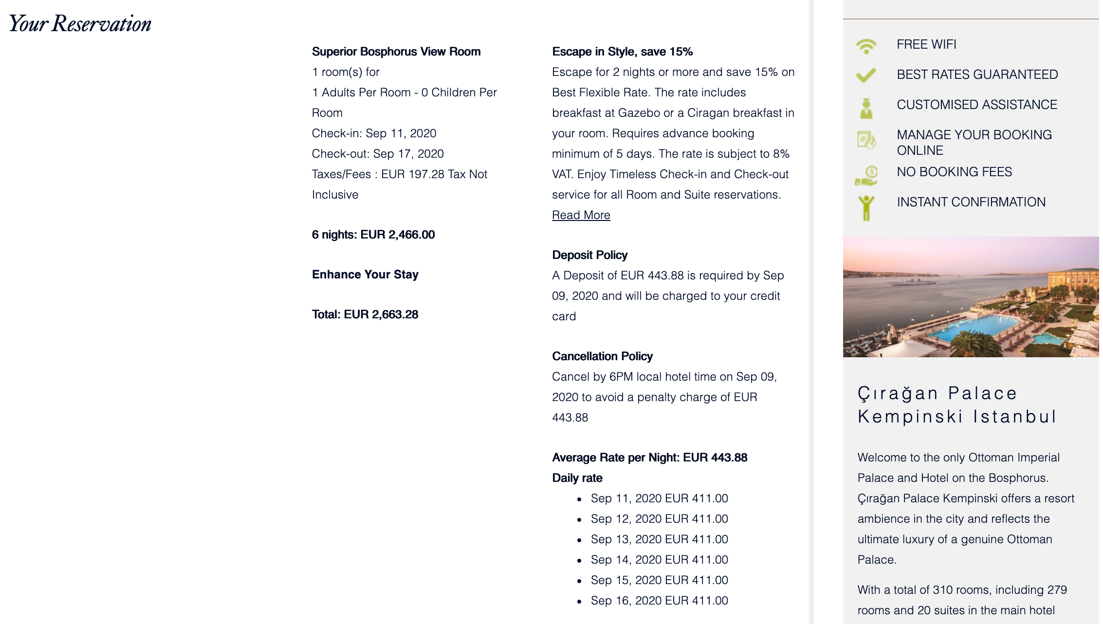 One of TPG's favorite hotels in Istanbul is the Çiragan Palace Kempinski. The hotel on the edge of the Bosporous was a former palace. We found cash rates of 411 Euros a night which is a pretty good deal. You could also use points from the Kempinski Discovery loyalty program.