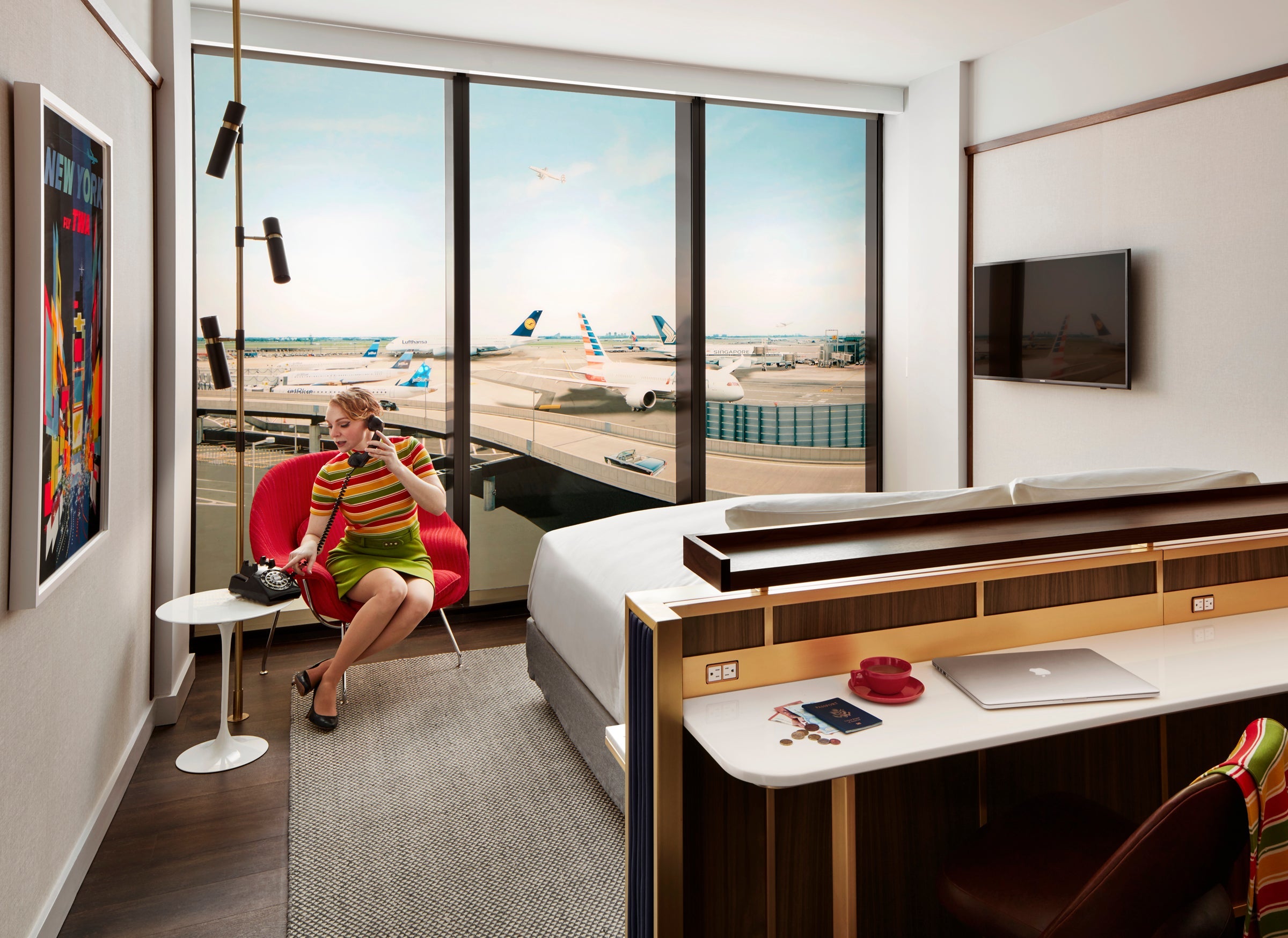 The 512 guest rooms will be decked out in TWA swag, too — some even will have views of the runway.