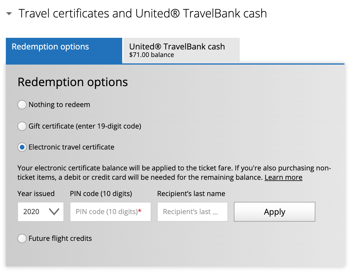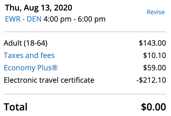 United has added the ability for customers to redeem ETCs for seat purchases, too, including Economy Plus — when you add a seat assignment during the booking process, the travel certificate will cover the entire amount, including any seat reservation fees.