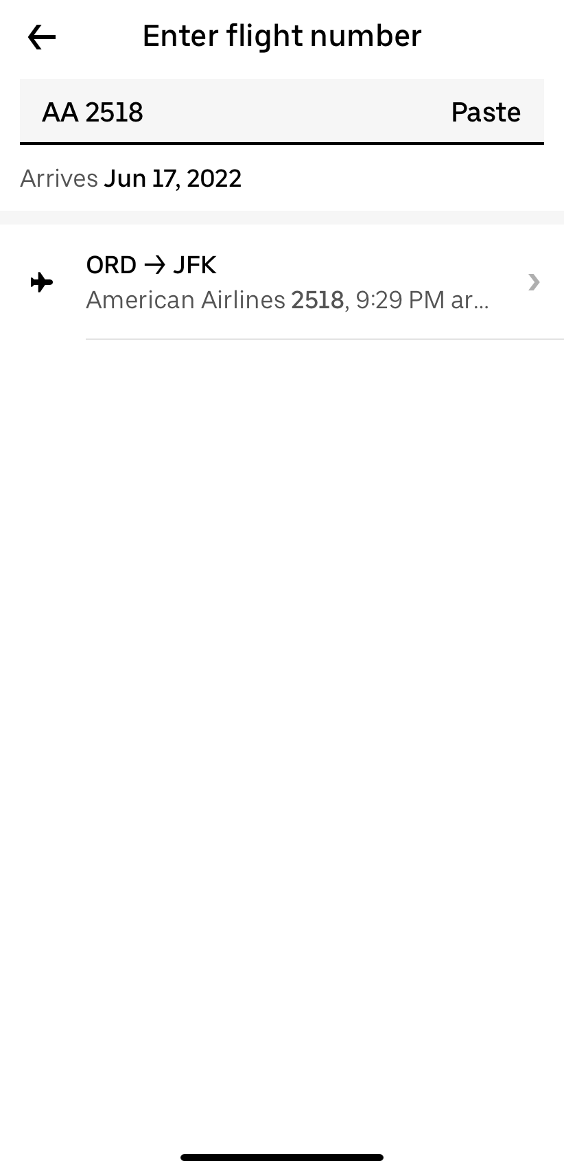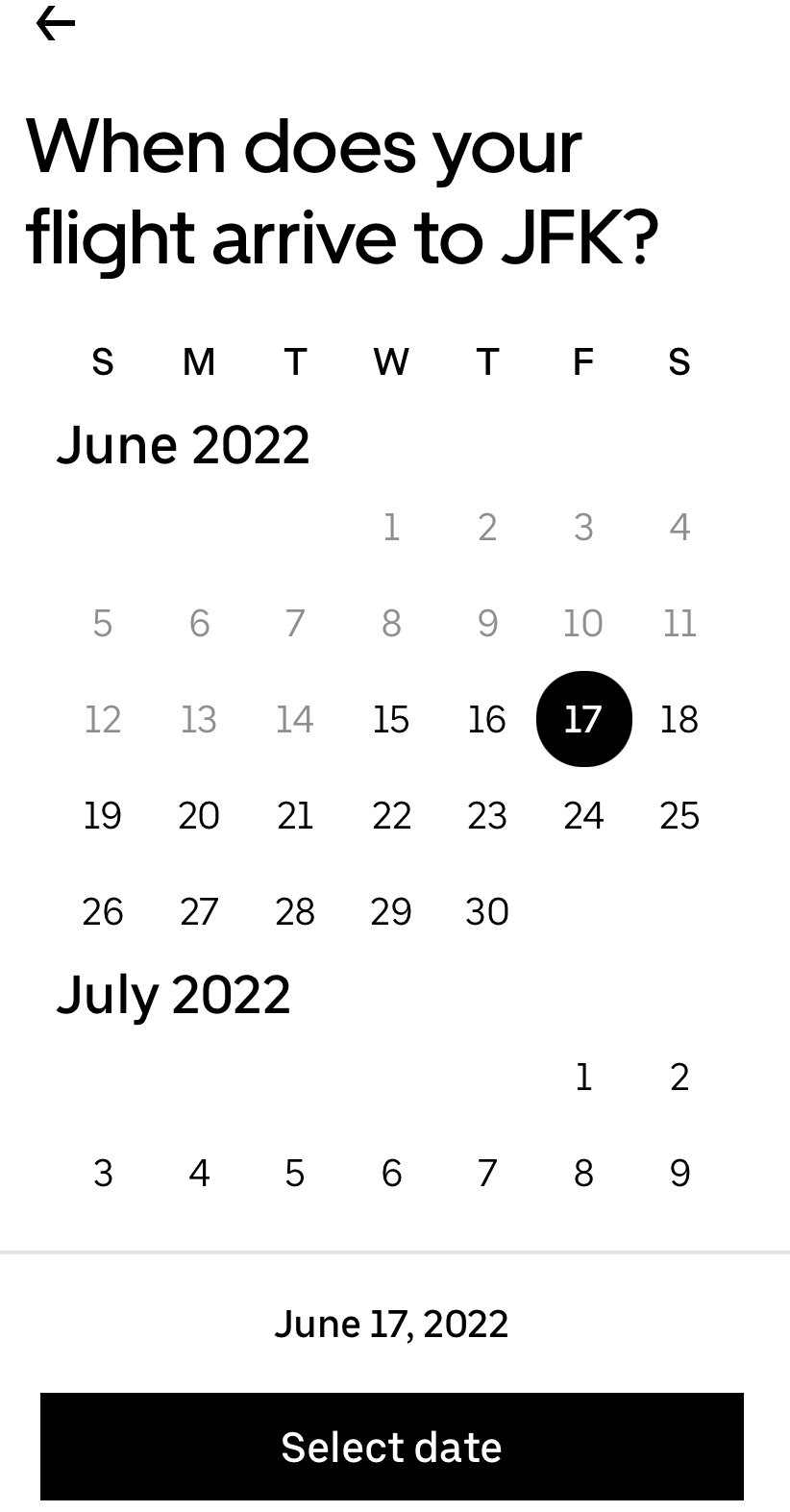 From there, use the calendar to select the date you want to schedule a pickup and enter your flight information. Once you put in your flight number, that specific flight should populate. Select your flight and hit the arrow to go to the last step.