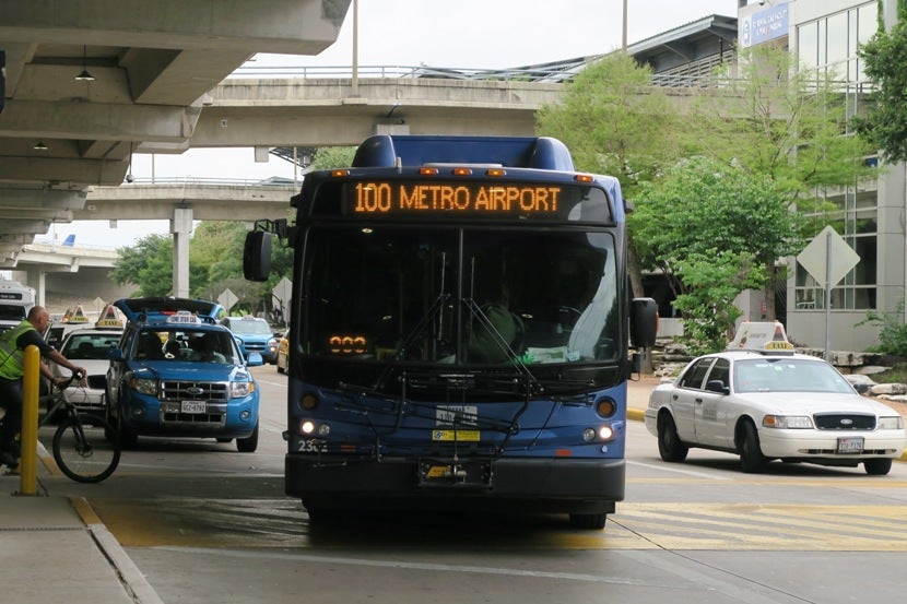 - Austin's "Airport Flyer" route #100 runs from the airport to downtown and up to the University of Texas campus for just $1.75 each way. I rode the bus yesterday and was one of only two people on the bus. That's likely to change soon.