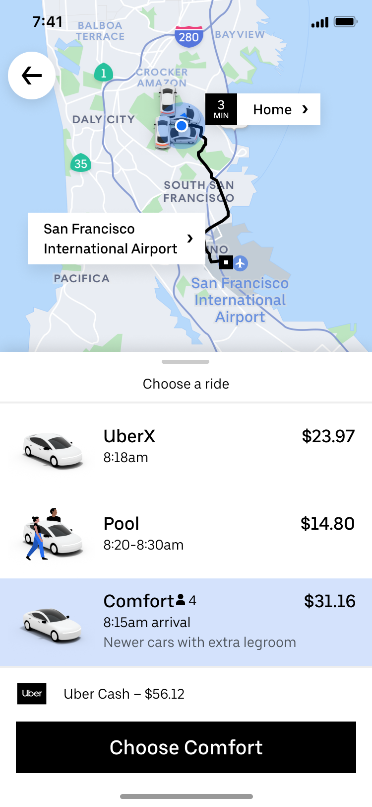 However the most noticeable difference will be that each one will have more legroom than a standard UberX vehicle. Vehicles will have minimum legroom requirements, so if an UberX is regular economy on an airline, think of Uber Comfort as being akin to United's Economy Plus or Delta Comfort +. (In that spirit, that probably makes UberPool equivalent to basic economy.)