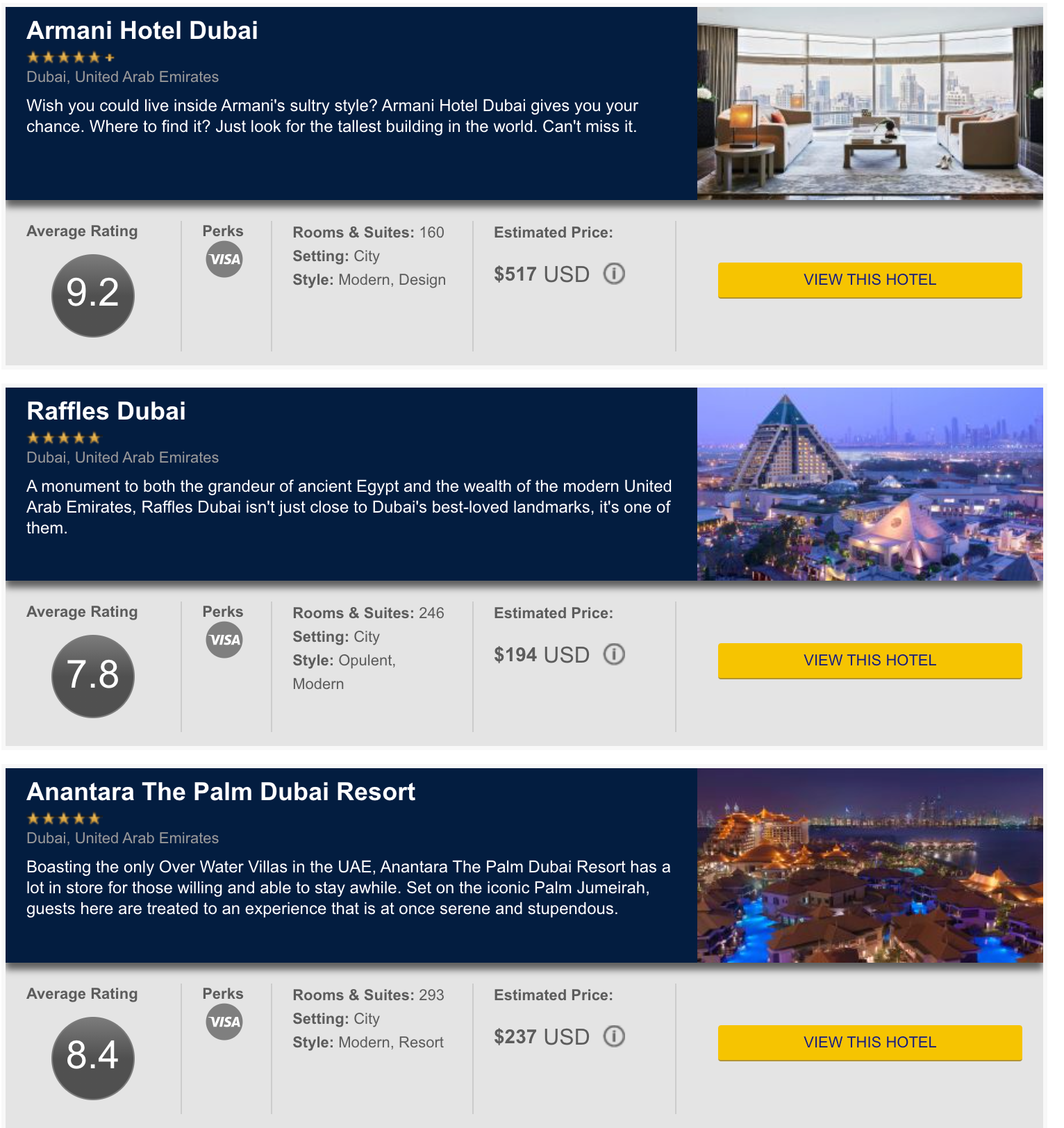 Let's say you want to stay at the Armani Hotel Dubai (which is inside the stunning Burj Khalifa, by the way). The price is the same on each site. If you don't enter a travel date, the site will generate a random (perhaps lowest?) estimated price for you.