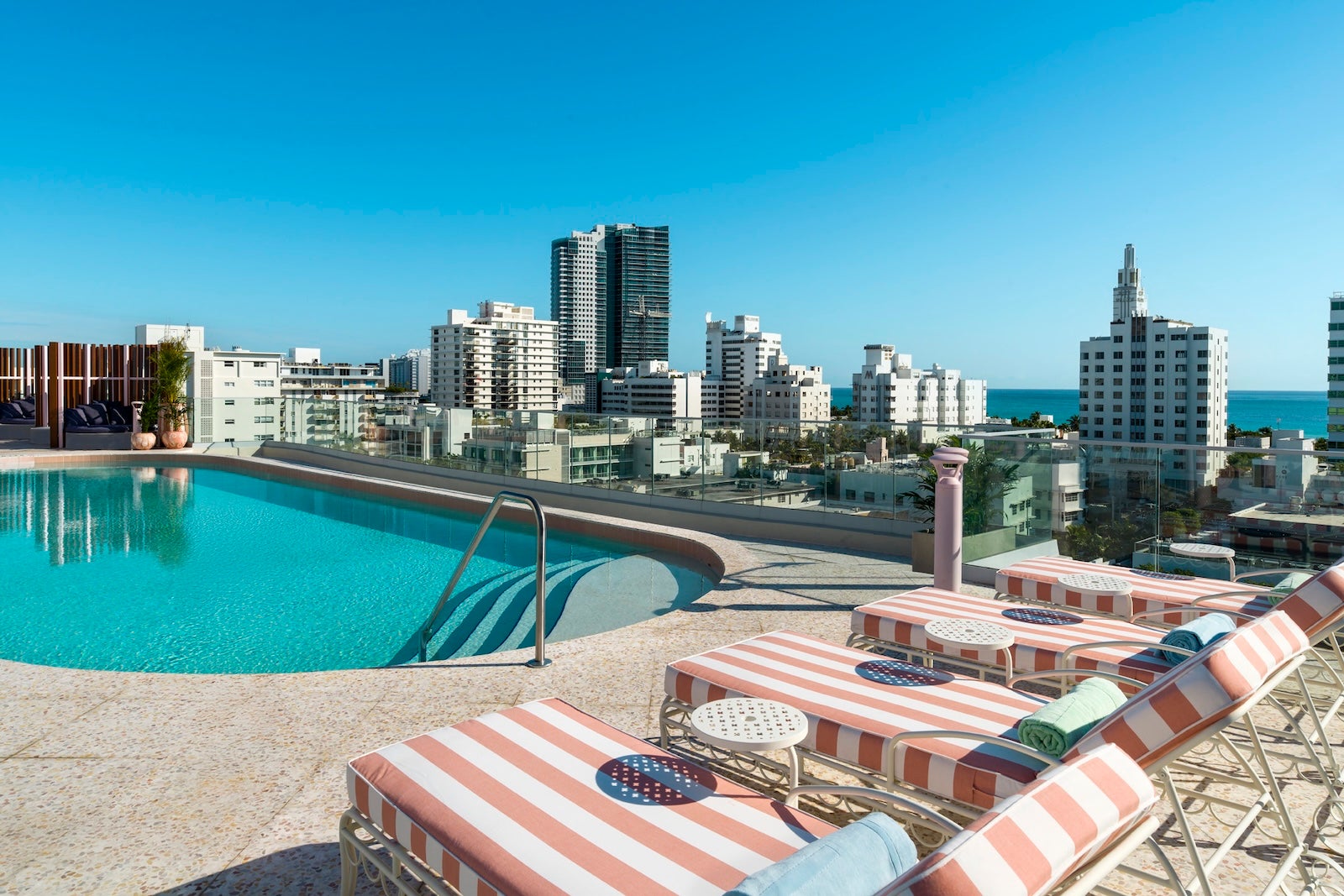 The rooftop is rounded out by a pool with city and ocean views.