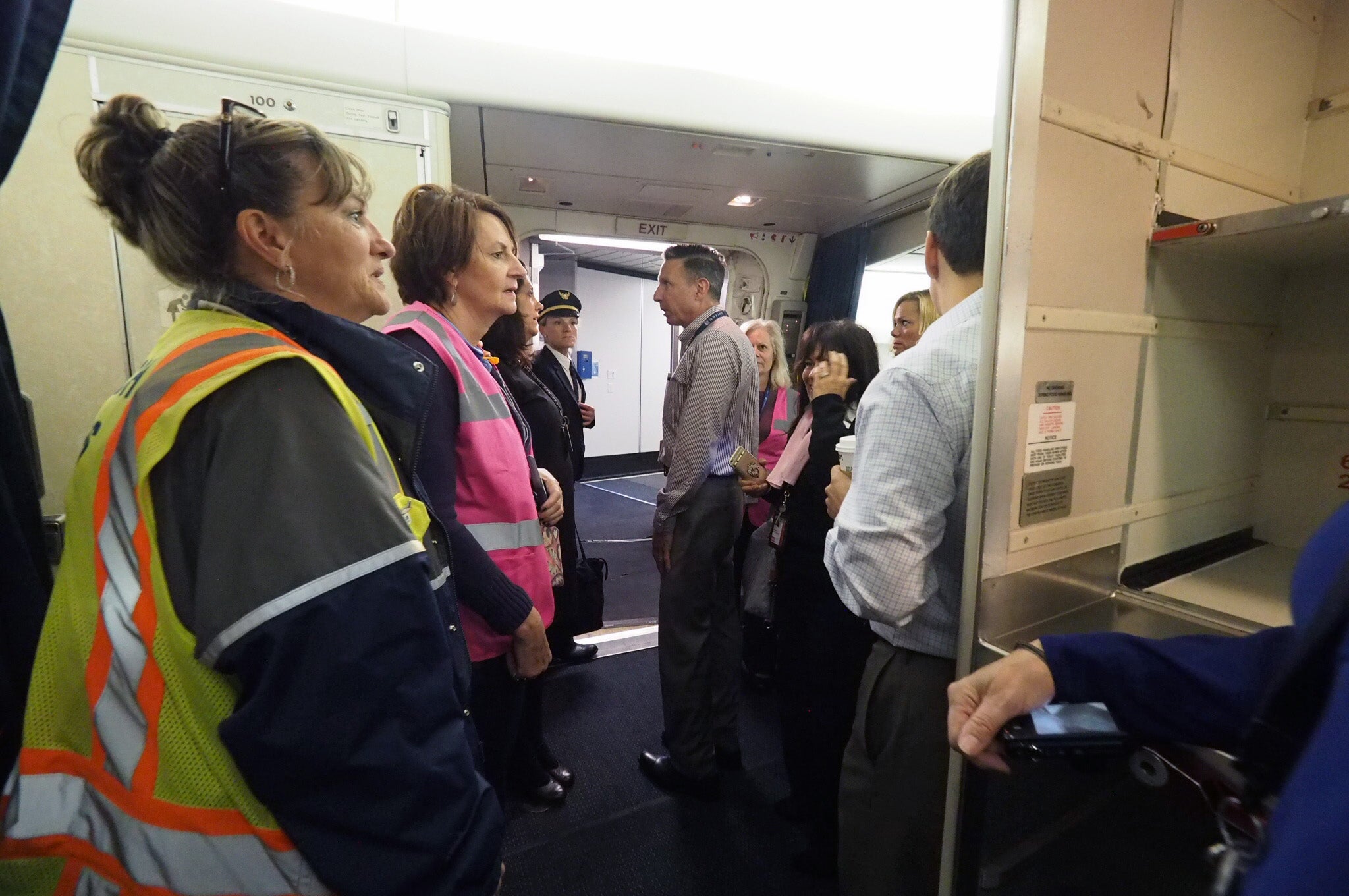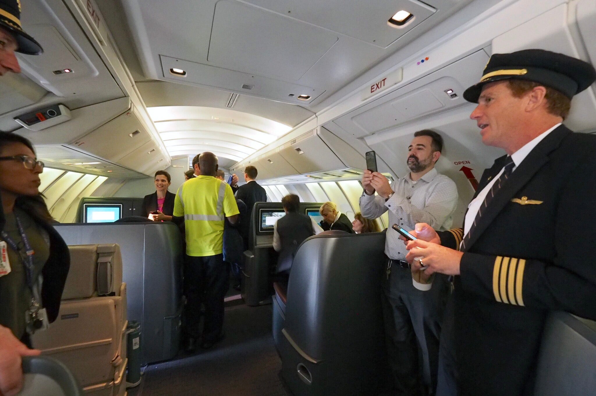 Employees captured photos in every nook and cranny, posing with coworkers, friends and crew members assigned to work the canceled flight.