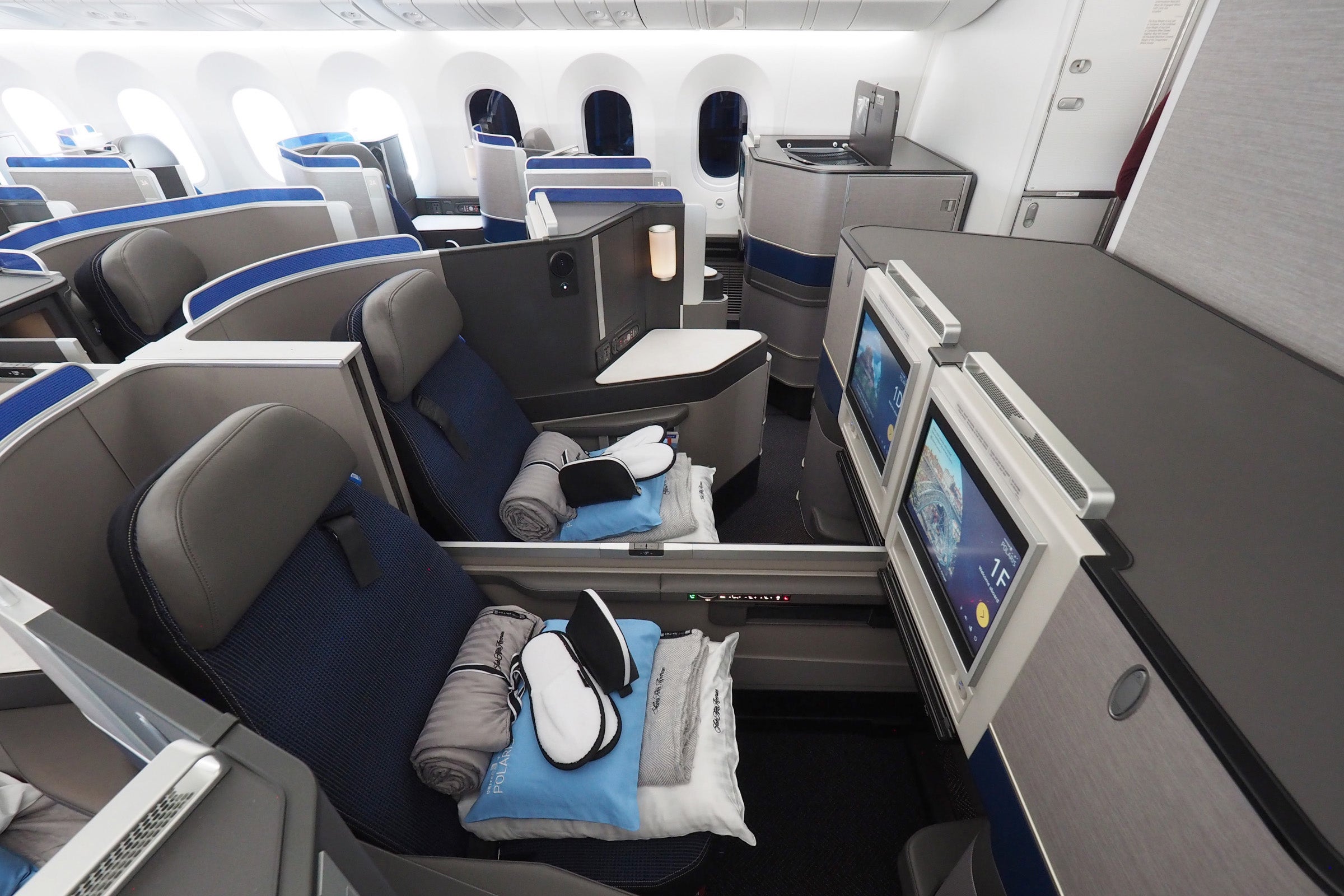 The 787-9, United's smaller Dreamliner, actually offers more lie-flat seats — with 48 spread between two cabins — but those are arranged in a 2-2-2 configuration, compared with 1-2-1 on the -10.