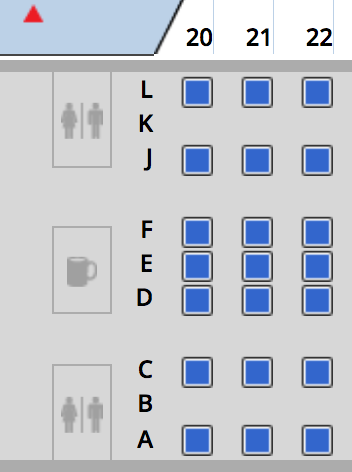 Center seats alternate as well — in odd-numbered rows, they're positioned side by side (below), while there's significant separation in even-numbered rows.
