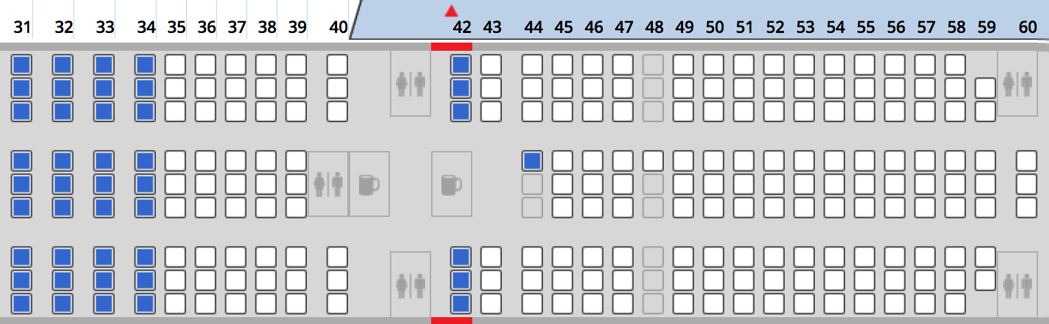 As with United's other Dreamliners, seats behind Door 3 have loads of legroom — on the 787-10, row 42's the place to be.