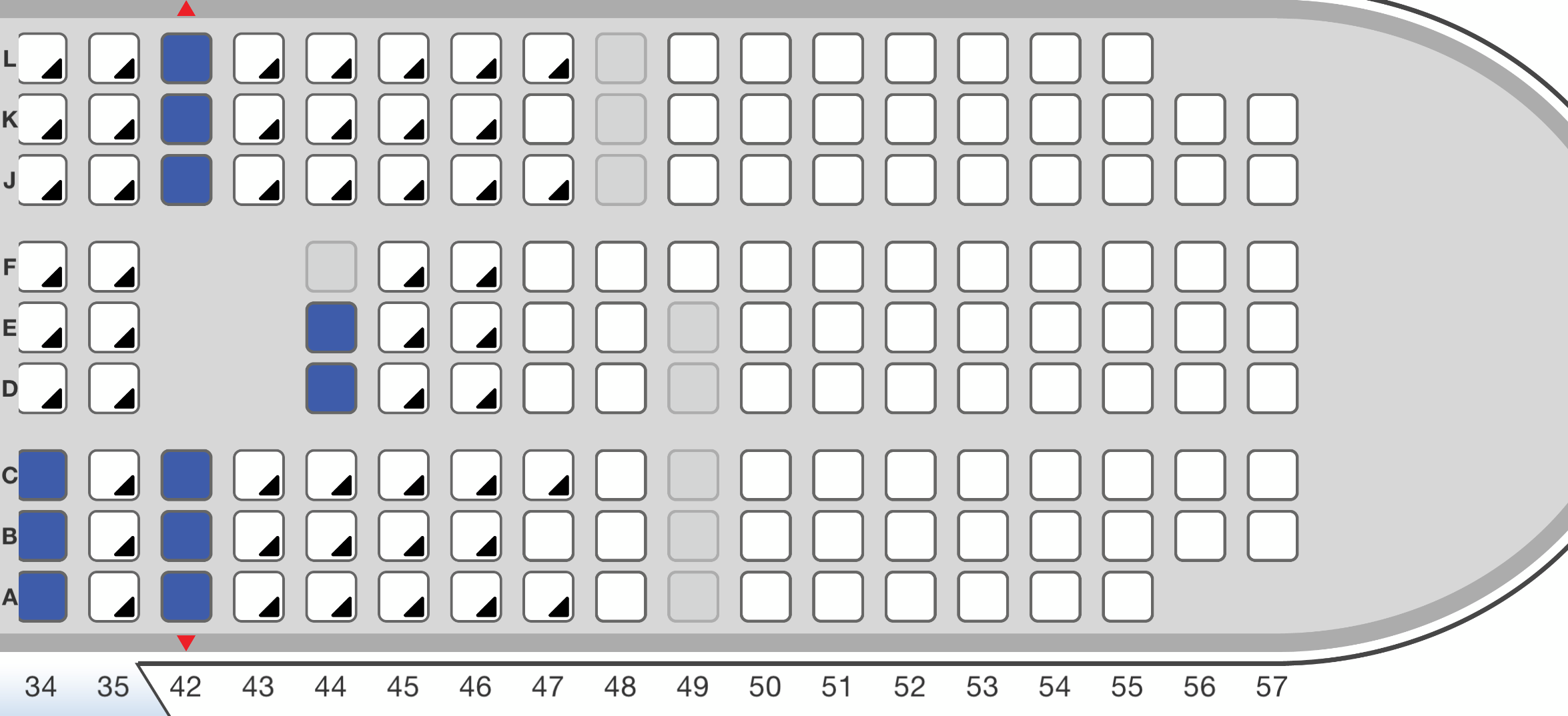 The biz cabin is spread across 12 rows in a 1-2-1 configuration. Premium Plus occupies just three rows in a 2-3-2 layout, and coach takes up the rest of the plane.