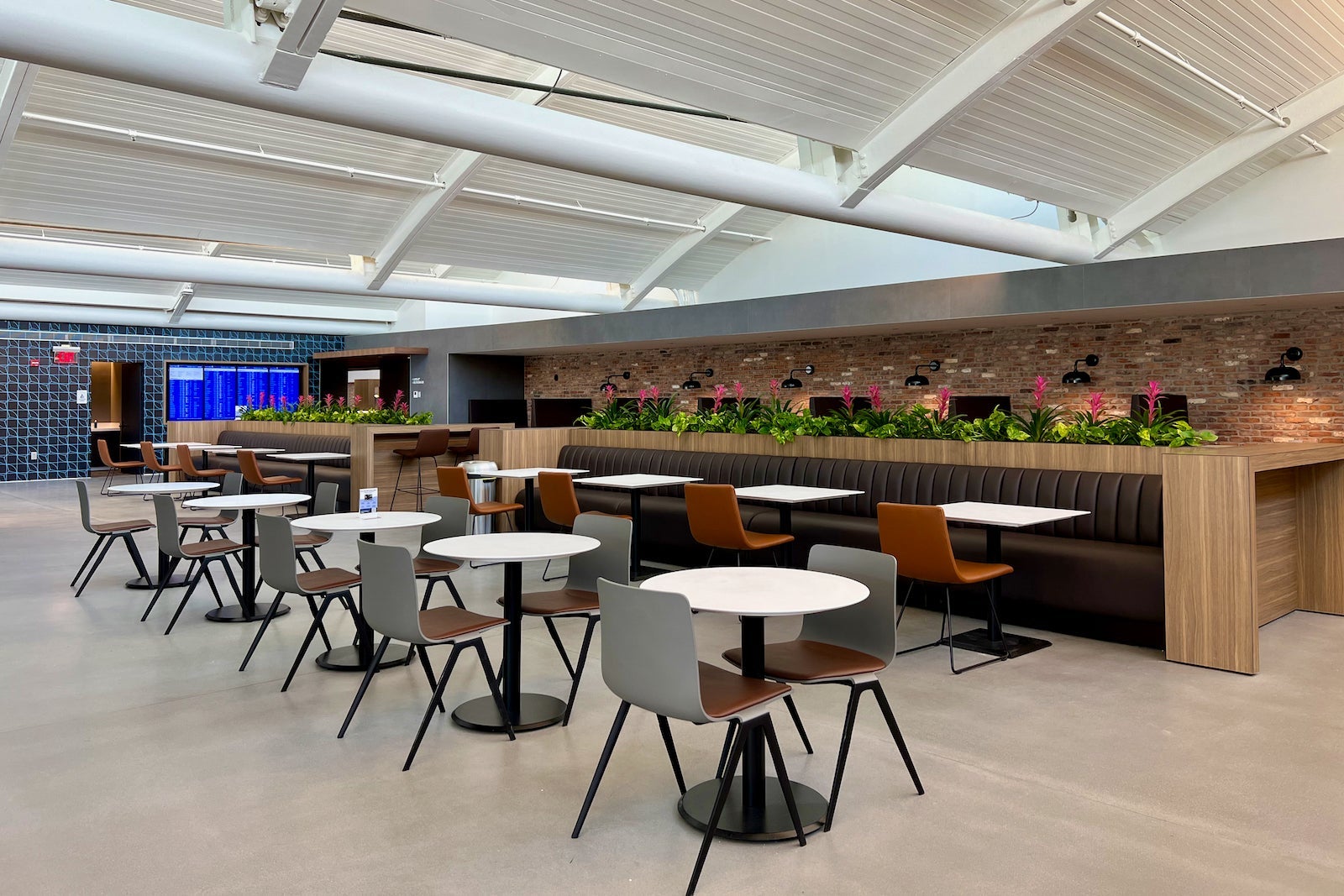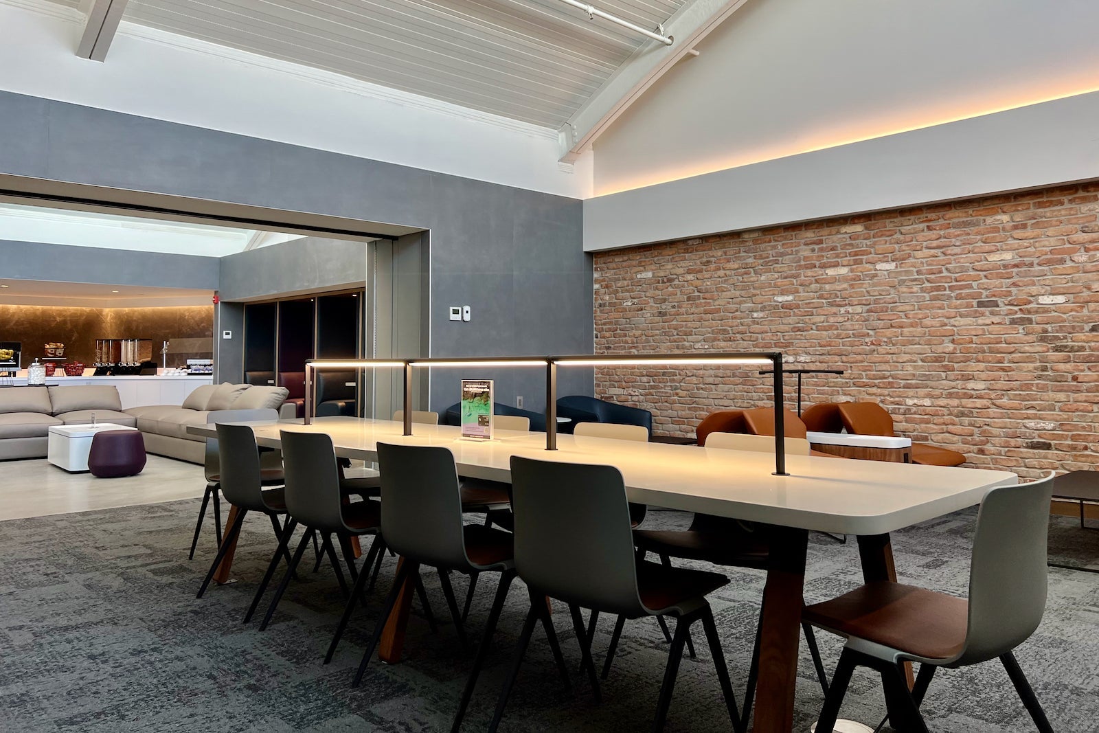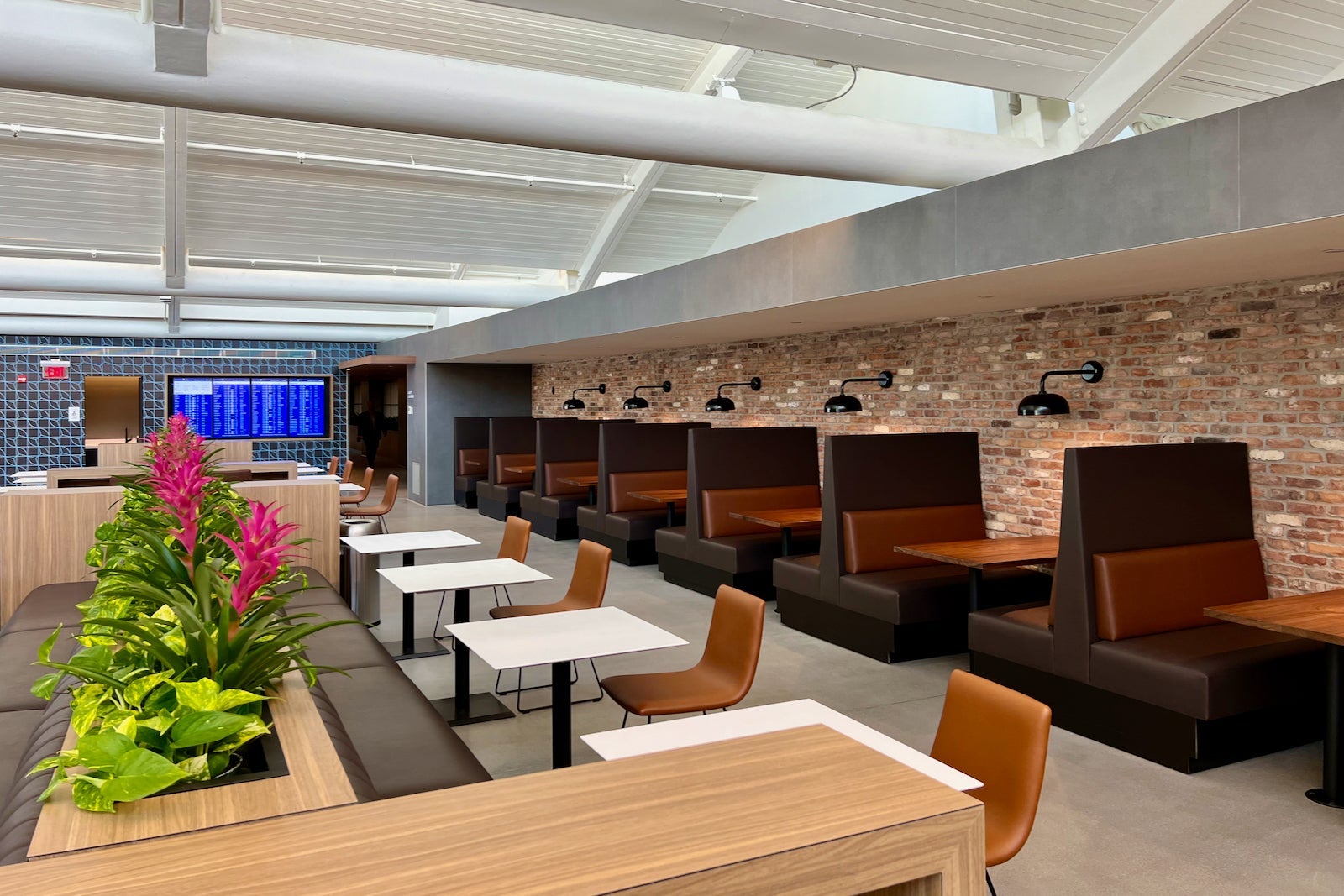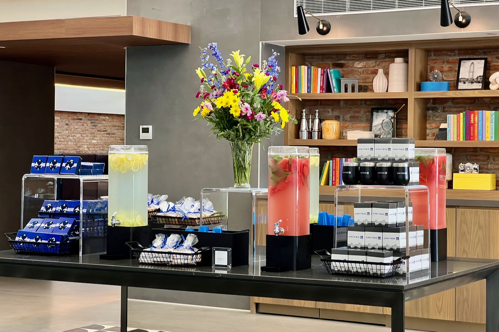 With exposed brick lining the walls, you really might not remember you’re in an airport. This feels more like a Brooklyn co-working space than a membership lounge at United’s Newark hub.