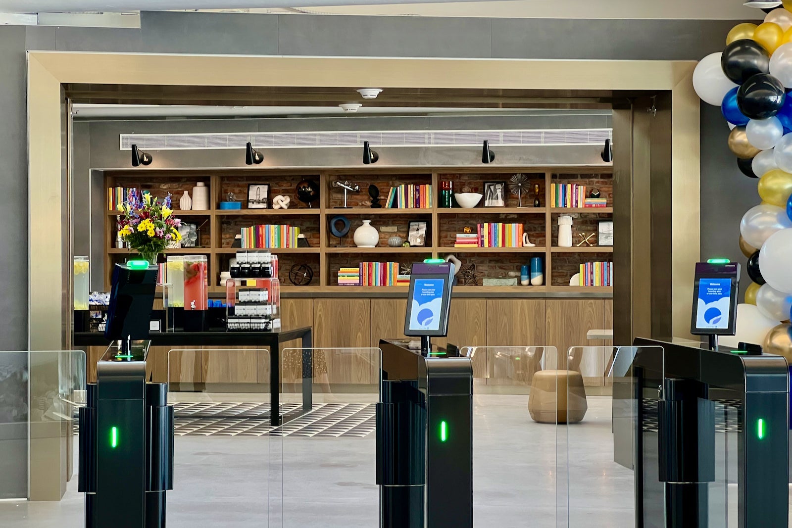 Once inside, you’ll find yourself in the welcome area that some United employees are calling the “library.”