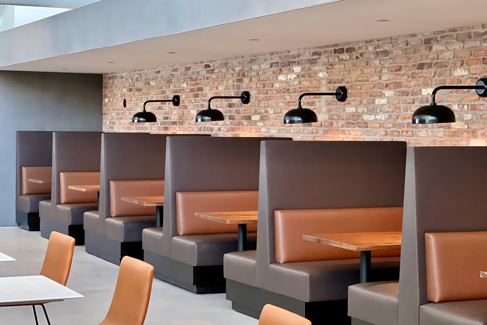 As you continue into lounge, you’ll find the two main dining areas, one of which continues with the exposed brick theme. The other dining area features standard bench seating and shared tables.