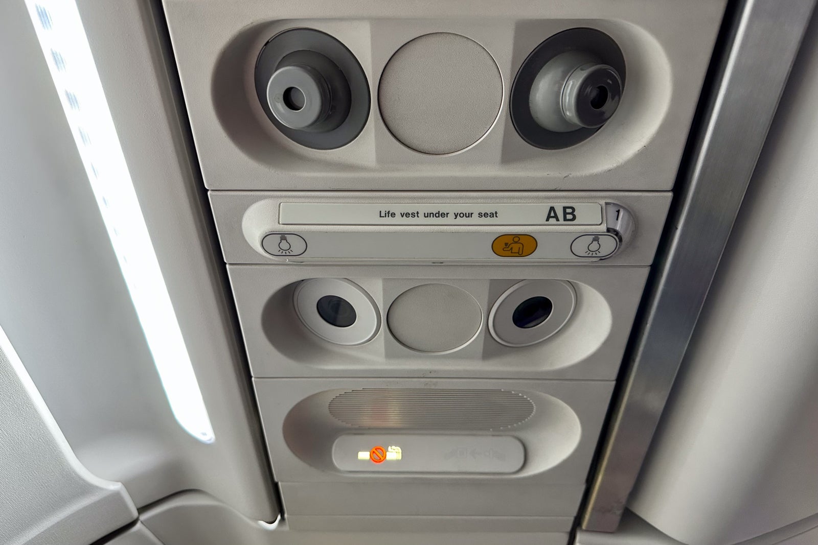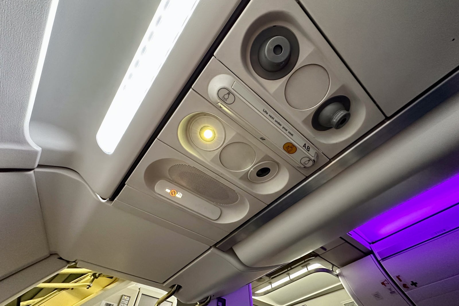 If there's one part of the onboard experience that still feels "old," it's the passenger-service unit above each seat. Unlike on Delta Air Lines, which installs futuristic units on its retrofitted planes, the service unit here looks just like it did before the retrofit with one change: You'll now enjoy brighter LED reading lights.