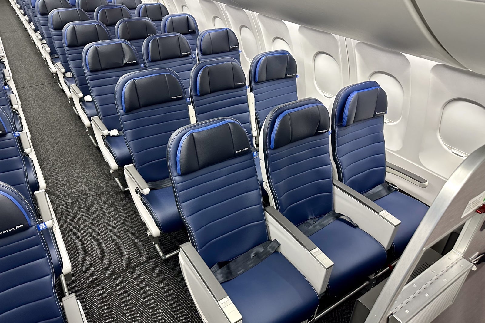 I'd avoid the bulkhead row, Row 7, in Economy Plus, and if faced with a choice, I'd choose the single exit row, Row 21, for the additional legroom. Most Economy Plus seats feature 33 inches of pitch, while those in economy have just 30 inches of pitch. (The exit row has a whopping 38 inches of pitch.)