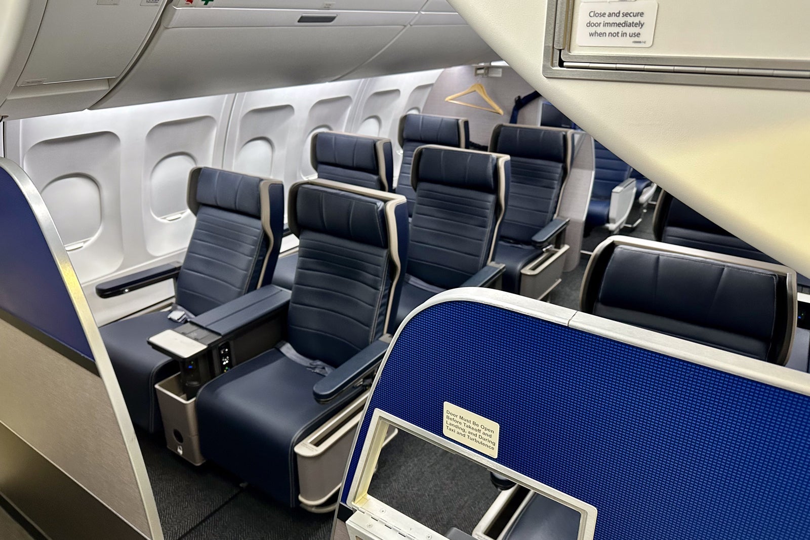 New first class, overhauled economy cabin shine on United's revamped Airbus A319