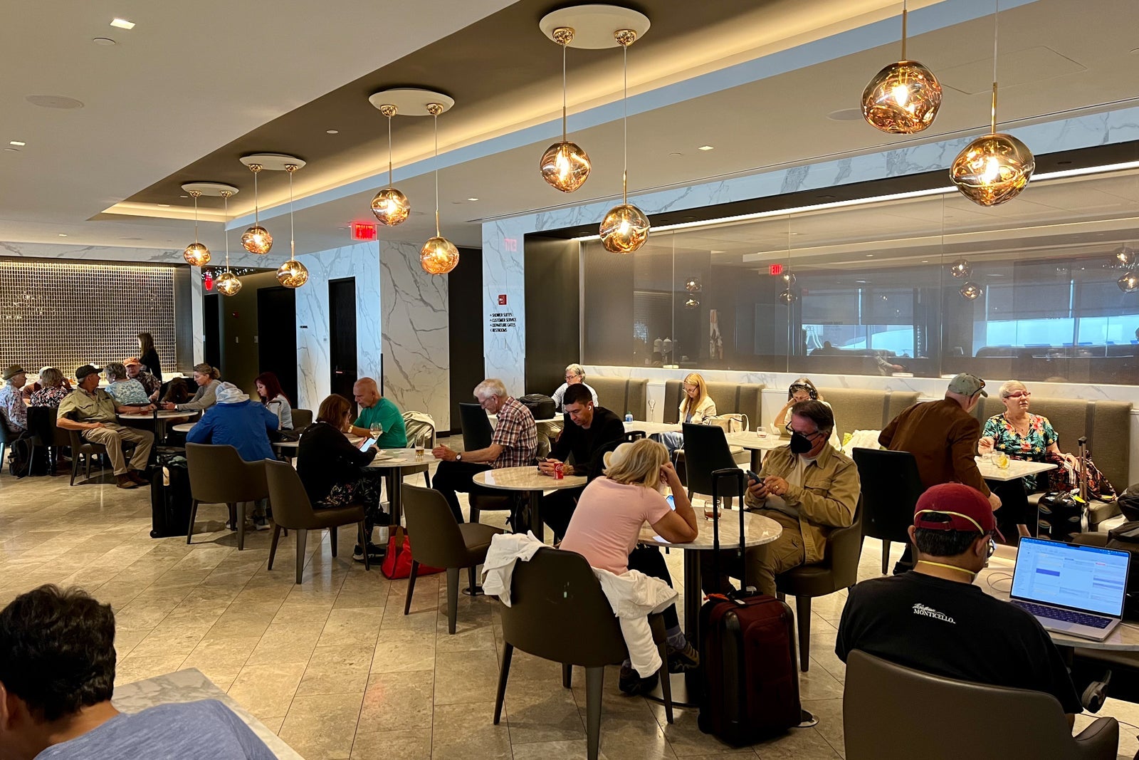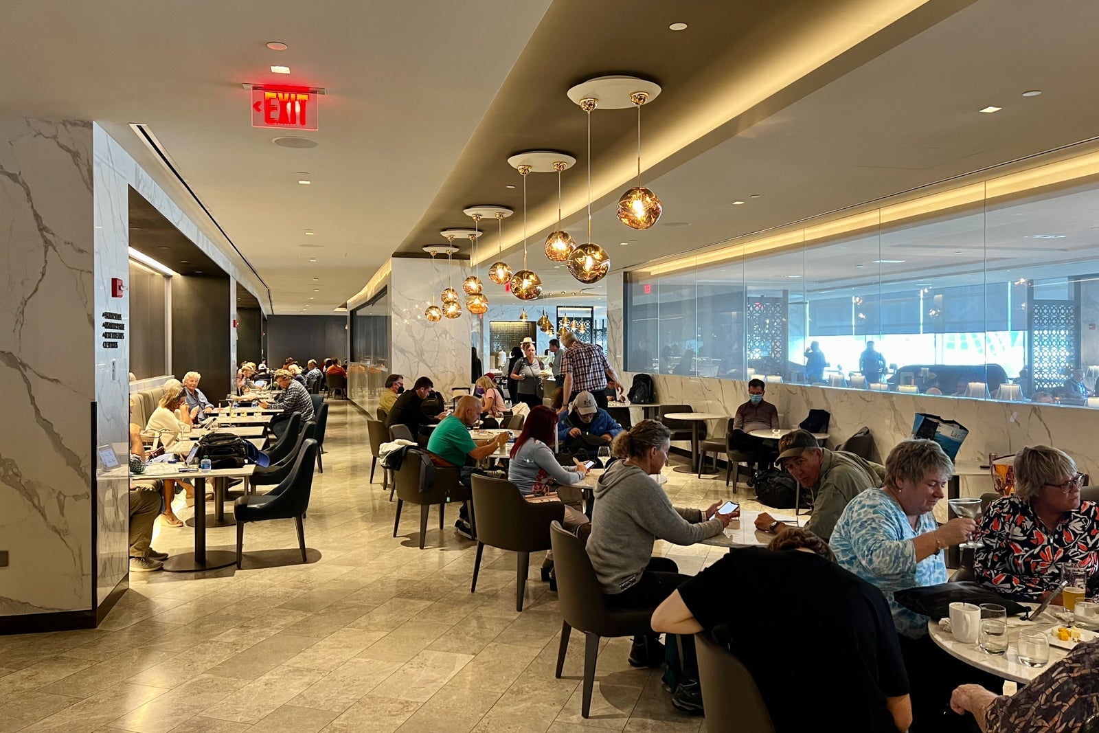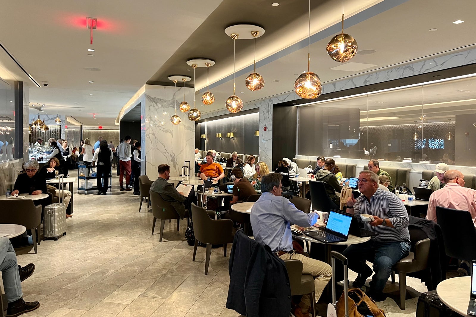 In fact, the Polaris Lounge was packed to the gills. While it may indeed be a "sold-out summer," many of these passengers were dealing with rolling delays and cancellations. I overheard plenty of folks complaining about being stranded for more than six hours after missing their international connection.