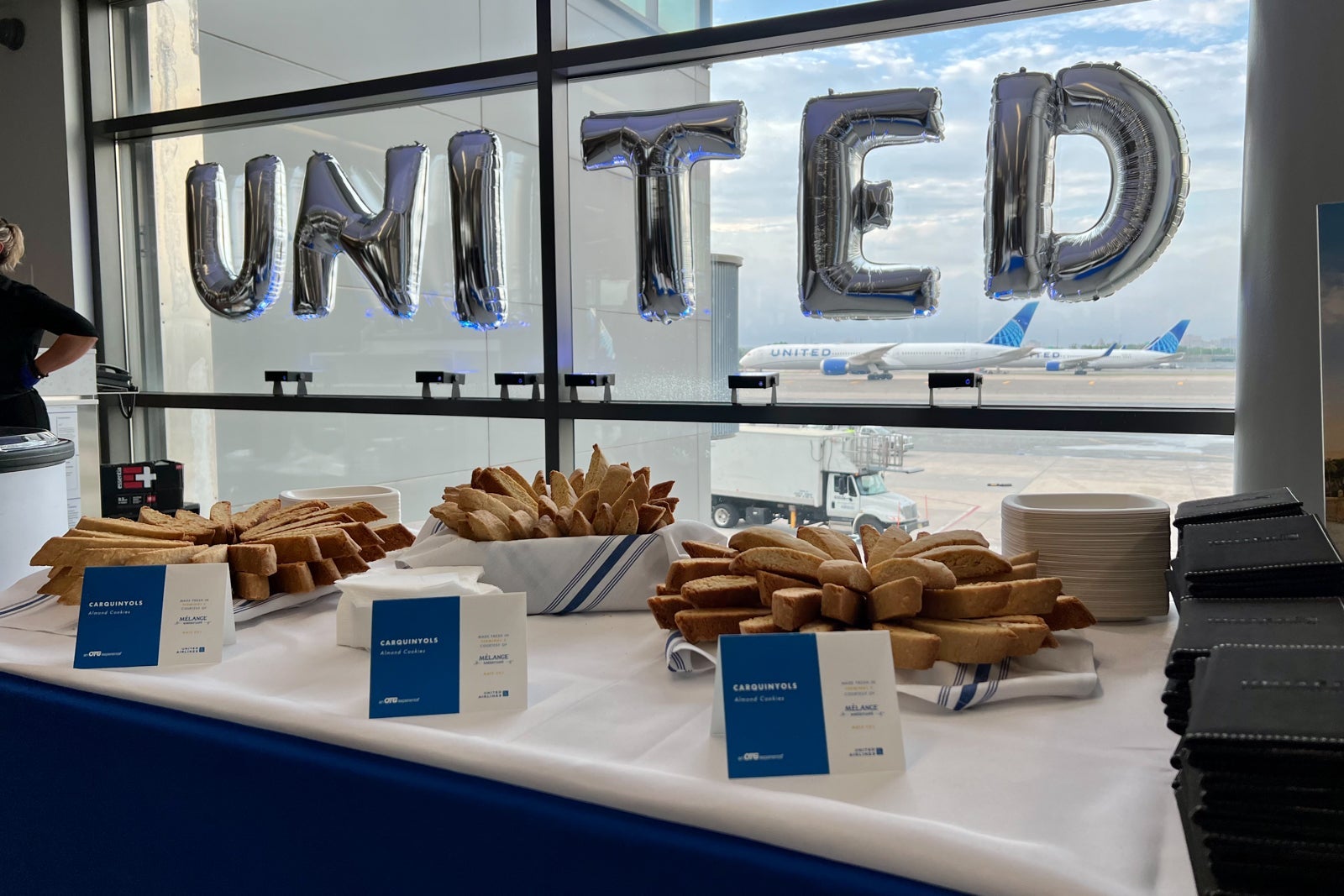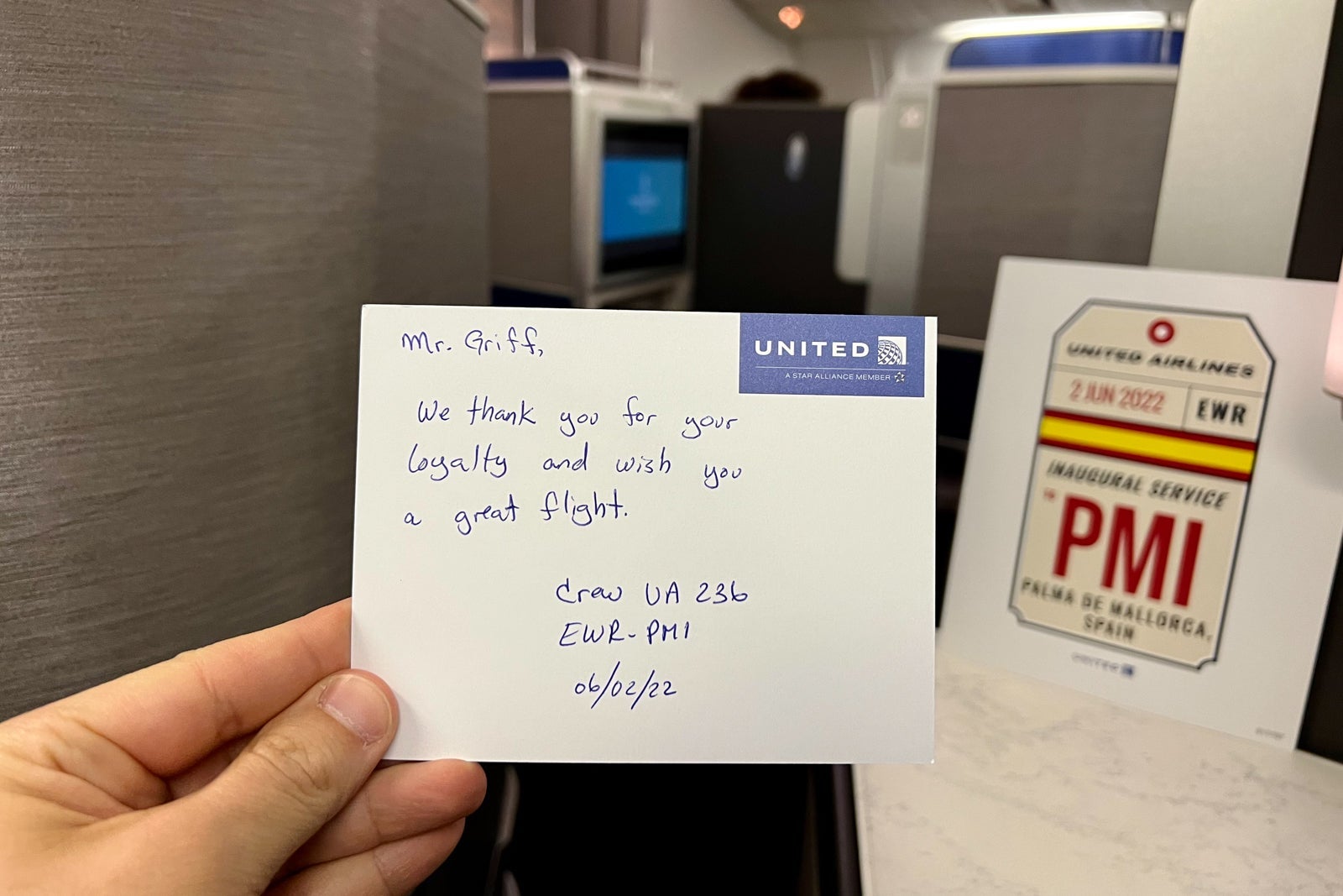 Passengers also received United-branded passport holders, which were stocked with a commemorative postcard celebrating the inaugural.