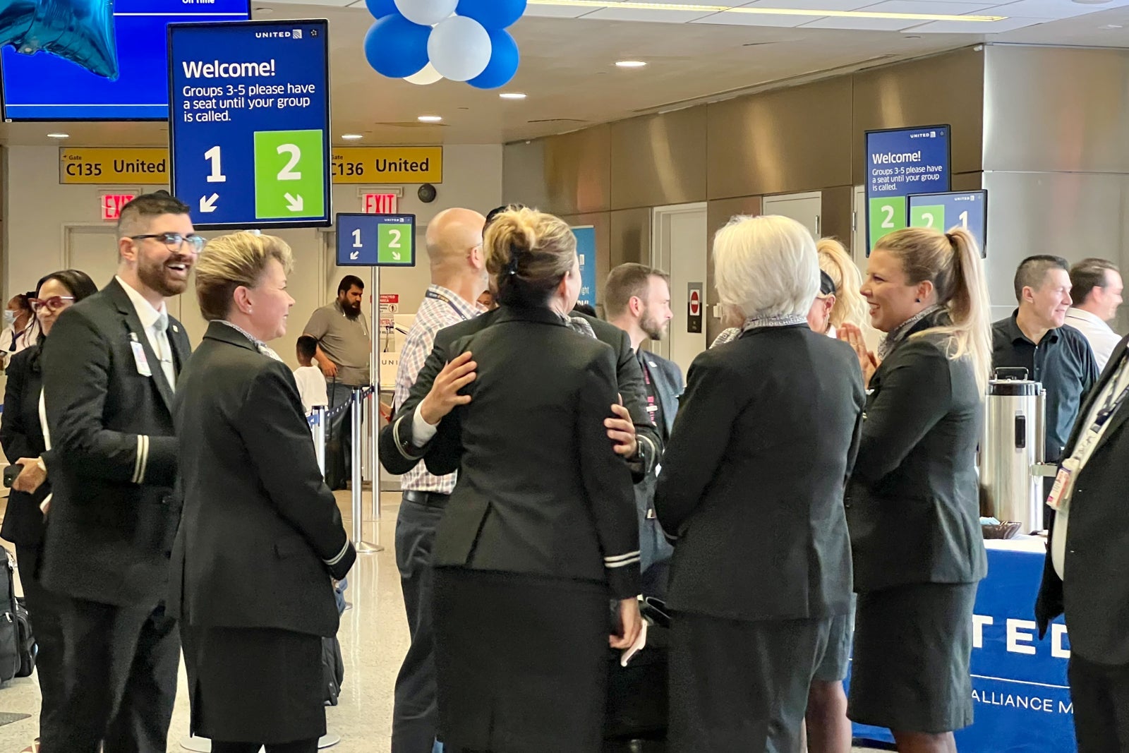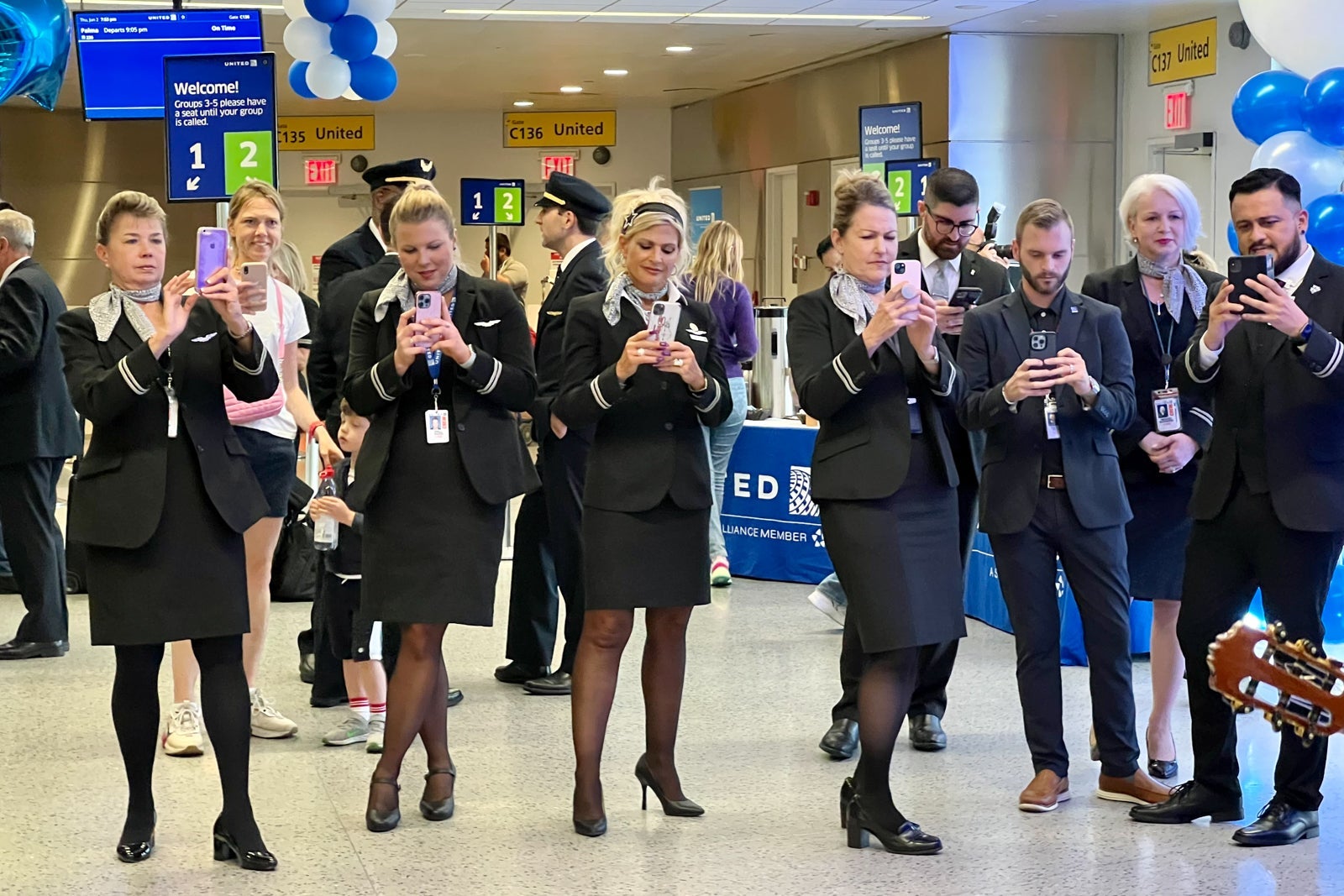 When I arrived at Gate C136 at 7:30 p.m., the inaugural festivities were just getting underway. The four pilots and seven flight attendants were milling around the speaker podium as a flamenco musician began his set.