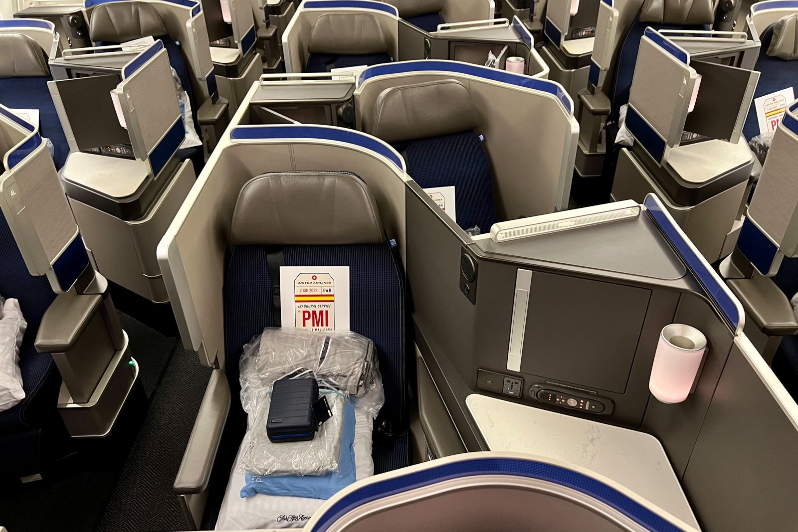 While I had originally locked in a 60,000-mile business-class saver award for this inaugural flight to Palma de Mallorca, I ended up rebooking my ticket just days before the flight when United released upgrade space for those cashing in PlusPoints, United's upgrade currency. TPG purchased a one-way coach ticket for roughly $1,100, and I then redeemed 40 PlusPoints to instantly confirm the bump to biz — a better overall value than redeeming 60,000 MileagePlus miles.