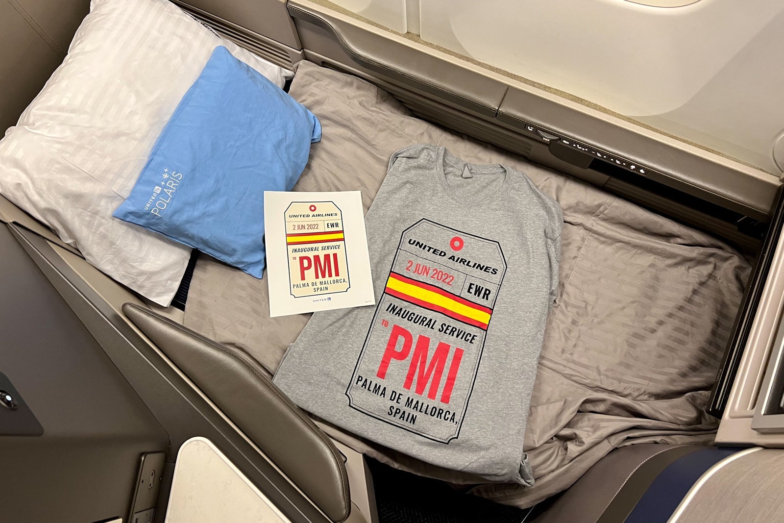 Of course, there was the standard Saks Fifth Avenue-branded duvet, pillow and cooling gel cushion. There was also a commemorative inaugural flight certificate that was designed to replicate a baggage tag with the PMI airport code written on it, similar to what the airline provisions for its other flagship inaugural flights.