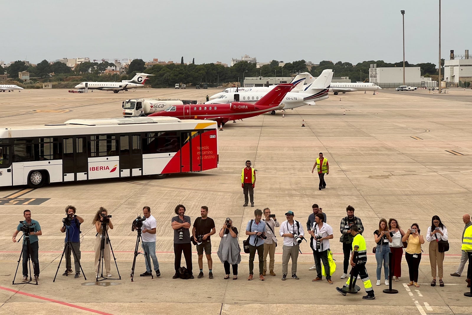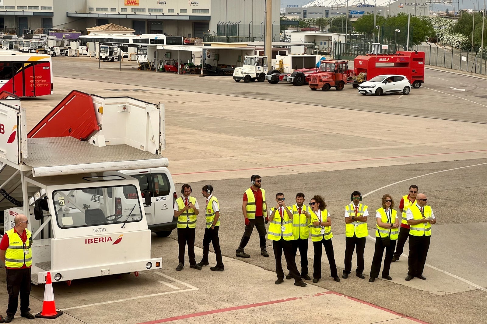 Palma passengers, as well as those departing to Lisbon and Athens at nearby gates, crowded around to get a close-up view of the action. Some snapped pictures and captured videos, while others went straight to the refreshment tables.
