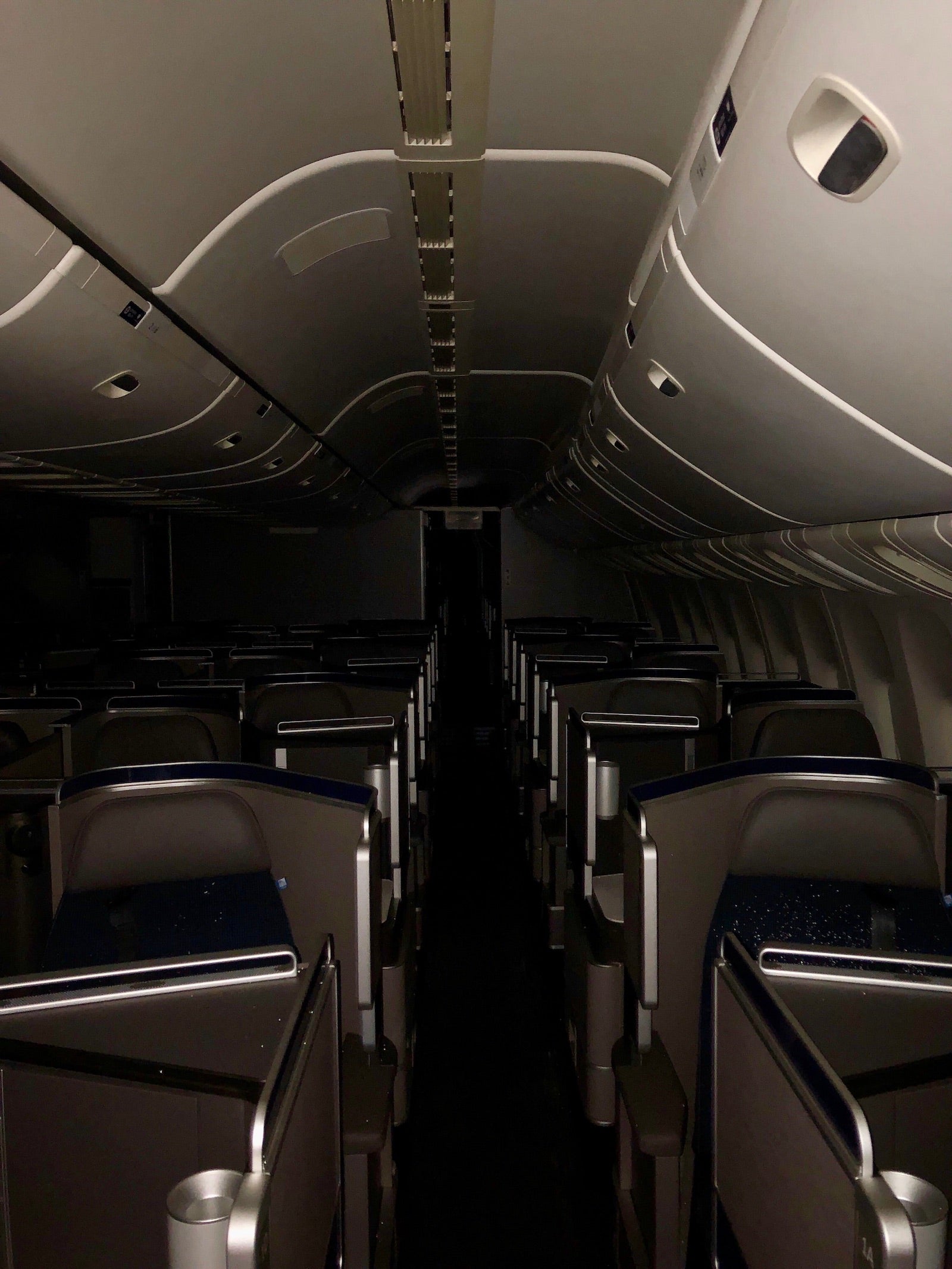 Both of the 777s in the hangar that day were headed back into prolonged storage. As if a symbol of the evaporation in international travel, a forgotten boarding pass from a past flight from São Paulo Guarulhos (GRU) to Chicago was lying on a seat of one of the jets. United only plans to fly about 45% of what it flew in 2019 during the fourth quarter, with the vast majority of that U.S. domestic rather than long-haul flying.