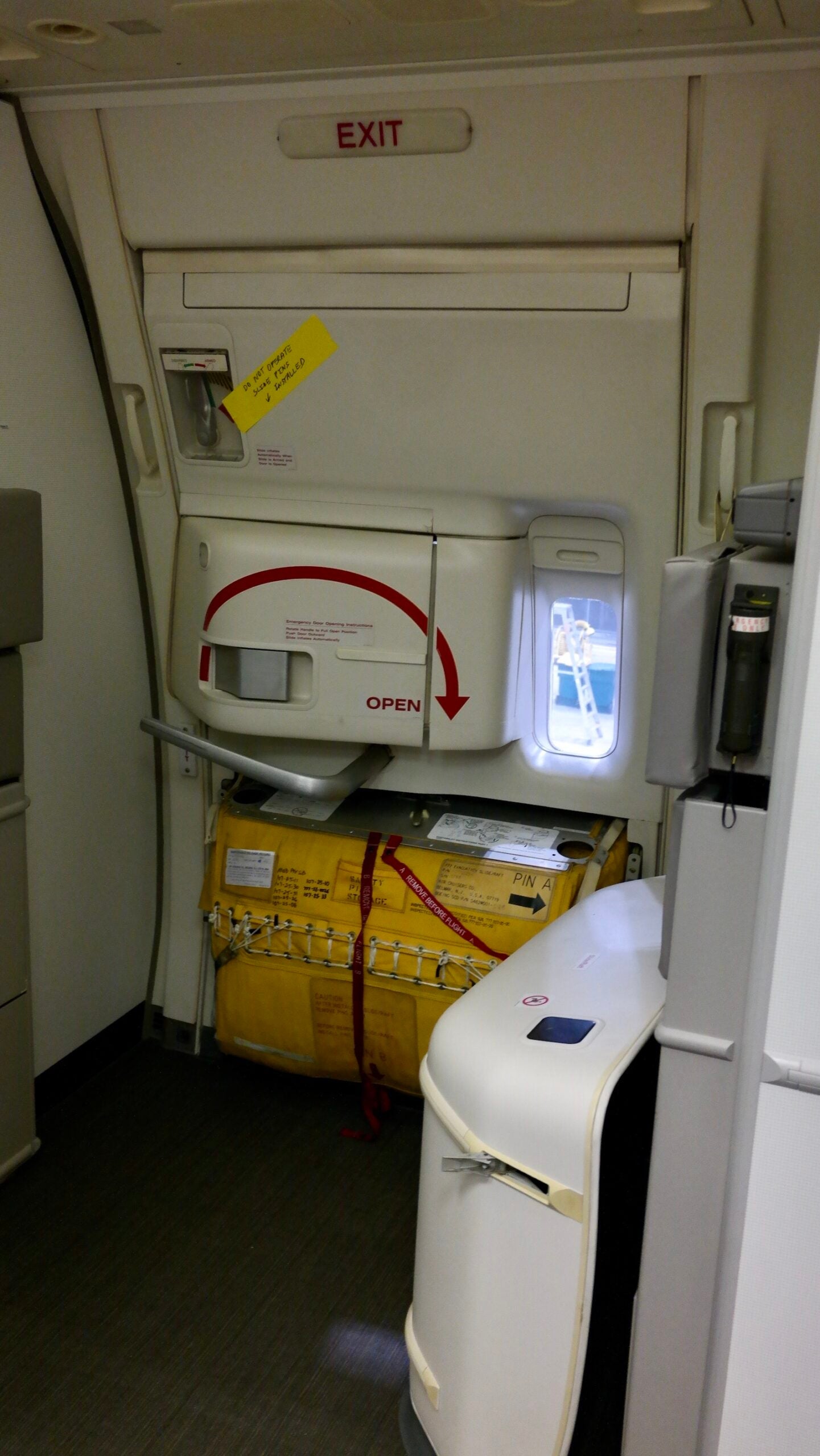 Emergency equipment is one thing that United does remove from the cabin of stored planes. Exit slides are left in place but checked regularly.