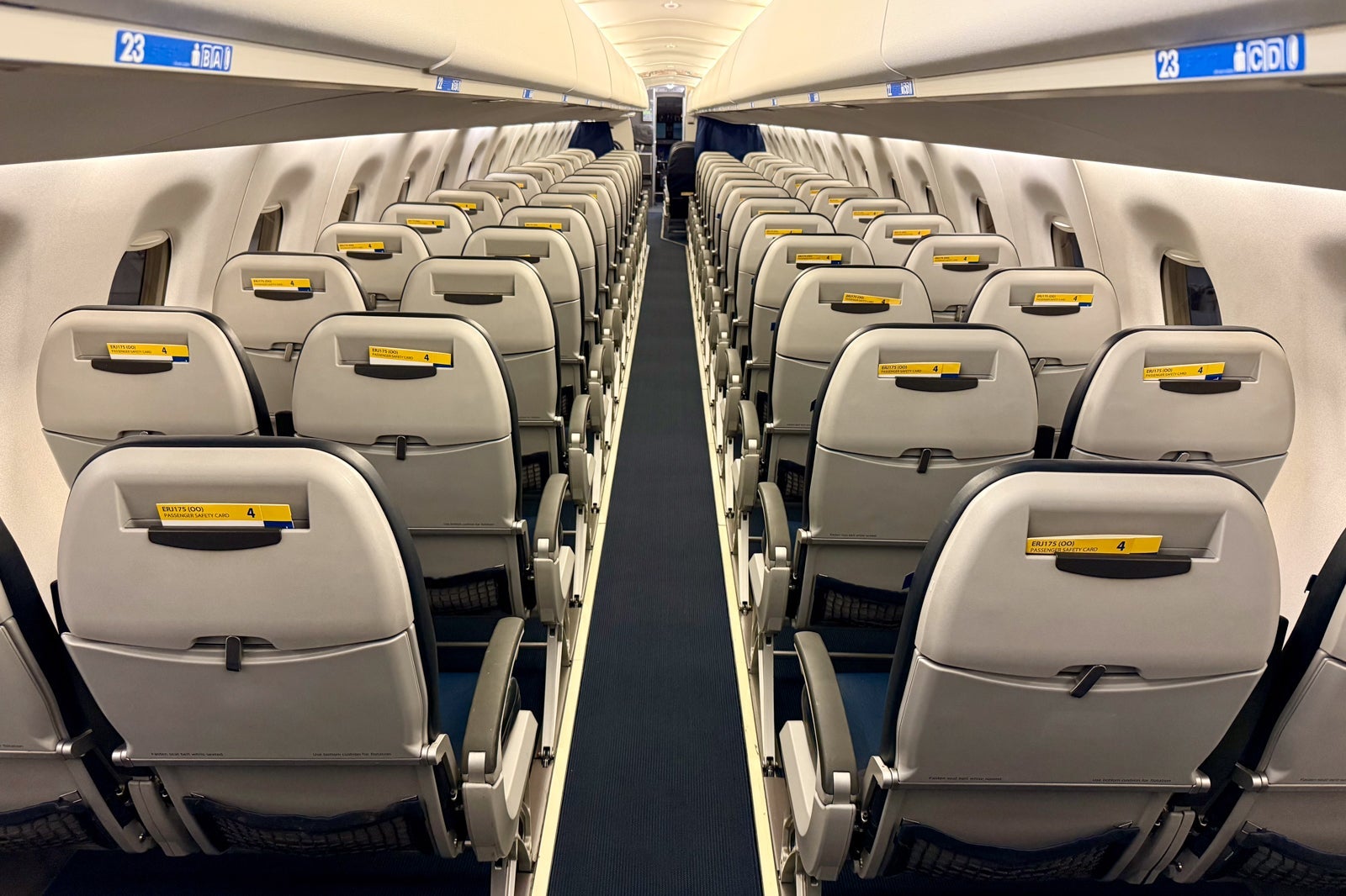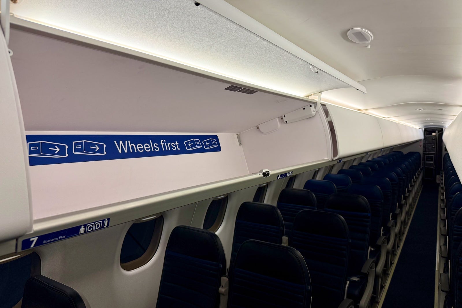 Interestingly, this E175 also featured United's new larger carry-on bins, which can fit more than four rollaboard bags each — another major upgrade for flyers.